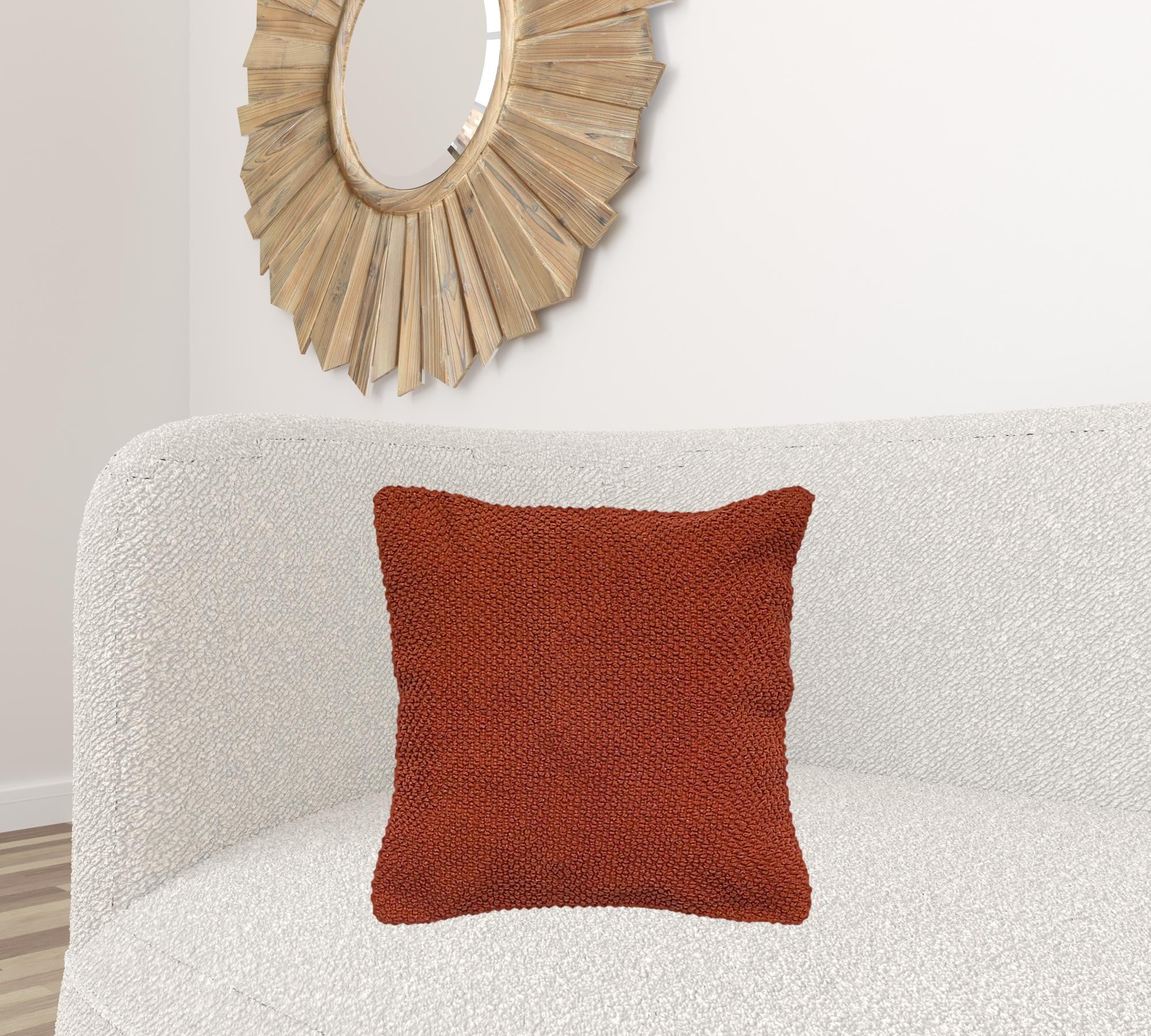 Presenting simplicity and minimalism in a compact design, this Rust Orange Nubby Textured Modern Throw Pillow will add a cheerful vibe into your living room. The rust orange base evokes a sense of warmth and the nubby texture all over the surface gives dimension to the pillow, making it a sophisticated piece of décor to add value to your interior style. Made with 100% cotton fabric, this poly filled pillow is light in texture with enhanced durability to last for ages ensuring a soft and cozy feel. The pillow features a matching cotton back with a hidden zipper closure for easy washing, and the knife edge provides sharp and clean corners, making it ideal for modern style of decors. Bring home this tastefully designed throw pillow that will add character, color, and comfort to your living room. 20” x 20” x 6.25”