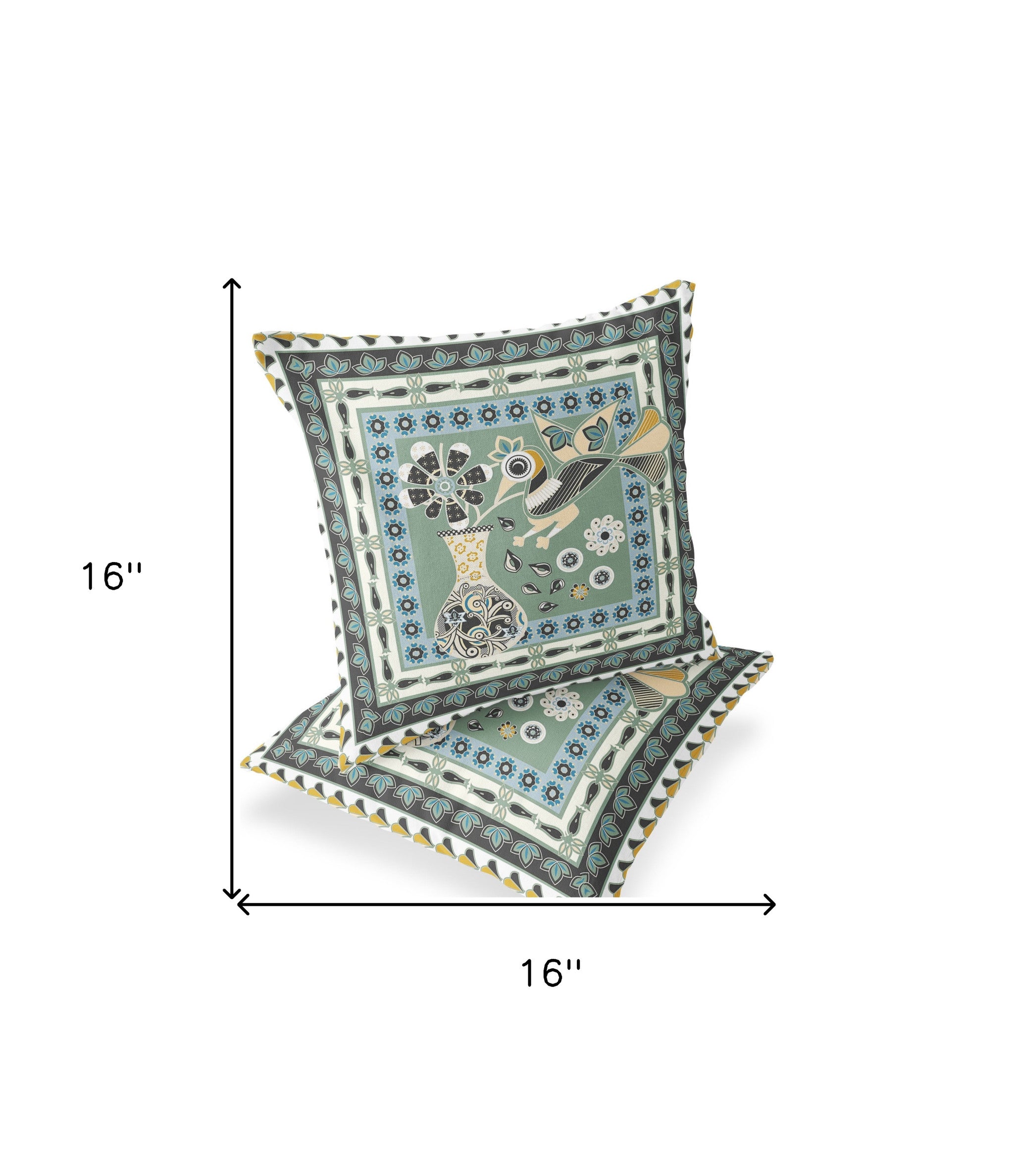 Add an air of fashion to your room and rejuvenate the space with this cute and fashionable set of two 16-inch x 16-inch green and black peacock blown seam floral indoor outdoor throw pillow. These green and black hued pillows represent quality construction, expertly made from durable polyester that is not only long lasting but super soft to the touch as well. Will add some color and dimension to your space indoors or out. A great decorative accessory for your favorite chair or to accent your sofa. 16-inch H x 16-inch W x 5-inch D