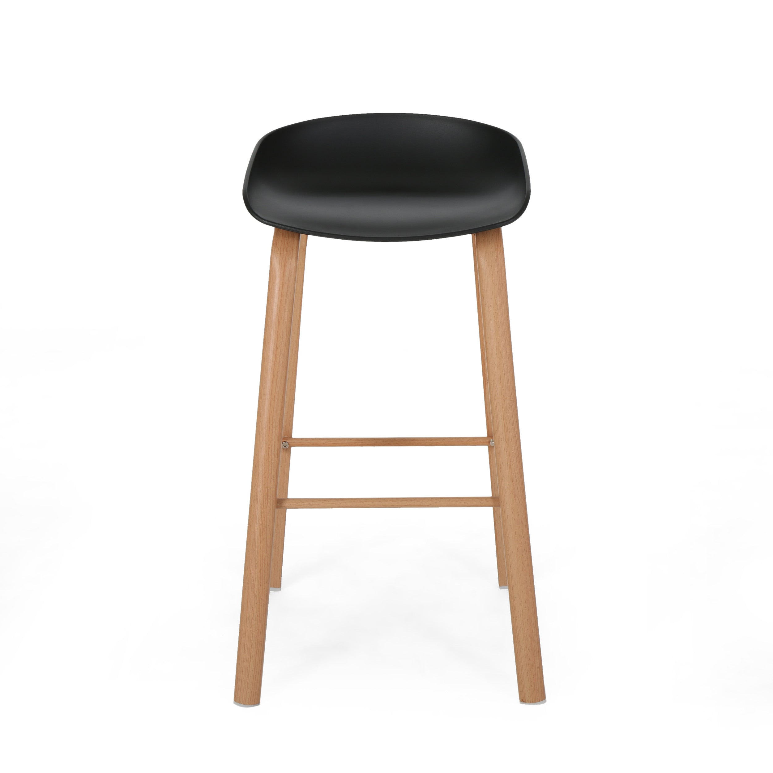 Set of Two Black and Natural Heavy Duty Plastic and Wood Backless Bar Height Bar Chairs