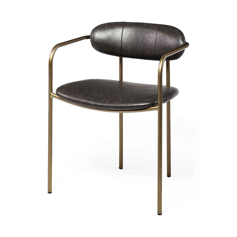This set of two brown and gold upholstered faux leather dining arm chairs is not only good looking, but it also provides long lasting support. Complete with solid back, this chair not only looks good but is comfortable. Dining chairs are a great way to compliment your kitchen or dining room but can also be used in the foyer, hallway, or any room you might need extra seating. 29-inch h x 21-inch w x 22-inch d.