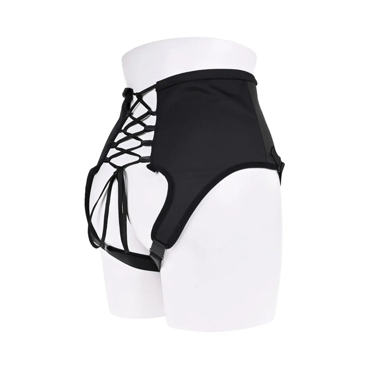 Explore powerful intimacy through the perfect blend of comfort and control with the High Waisted Corset Strap On. Designed with a high 9uality, stretchy fabric, the soft material forms comfortably across your body and uses adjustable corset laces to find the the perfect fit. The added adjustable straps leading to the padded O Ring connector keeps your dildo secure with use and flexible to adapt to wherever your play takes you. Express your desires in the soft commanding presence of your self-assured sensuality and delve into pleasure that has no limits.