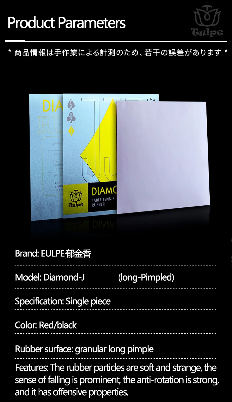 TULPE DIAMOND-J Table Tennis Rubber Long Pimpled No Sponge(with Sponge) Ping Pong Rubber for Training