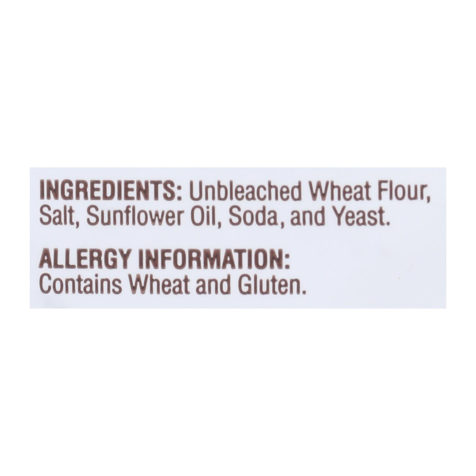 ingredients : unbleached wheat flour;salt;sunflower oil;soda;and yeast