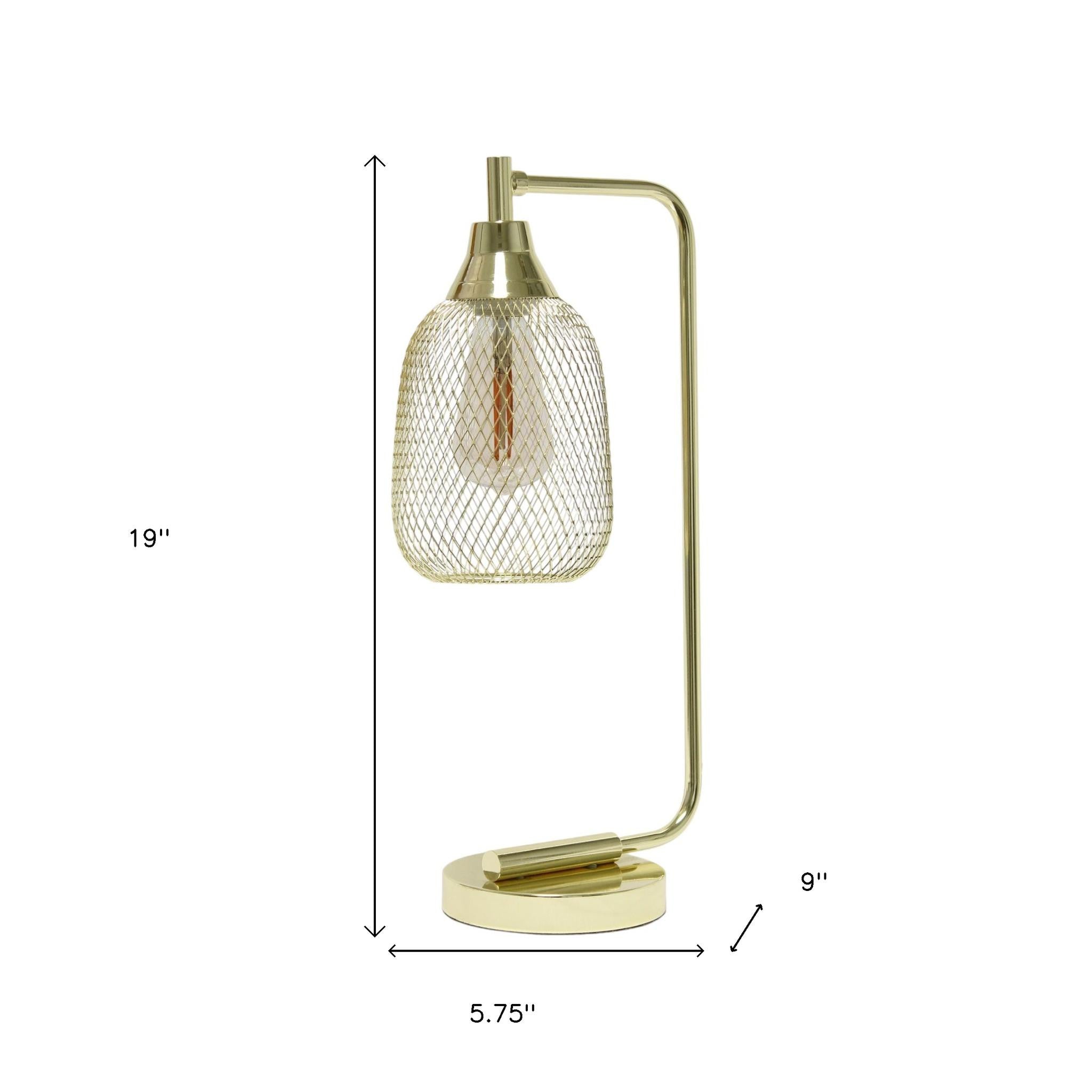 19" Gold Metal Lantern Table Lamp With Gold Globe Shade