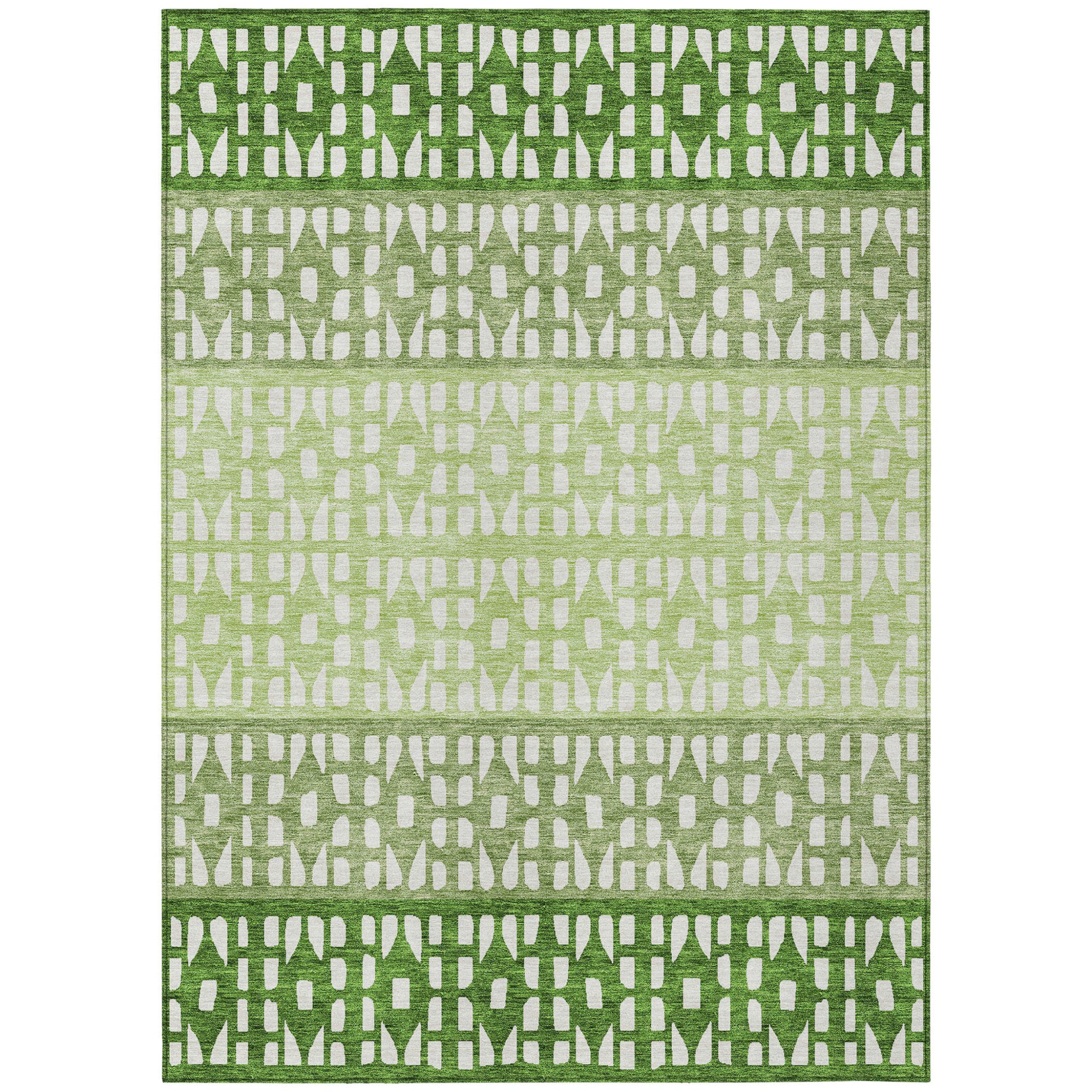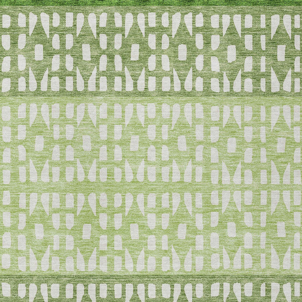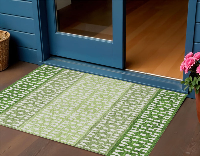 3' X 5' Green Sage And Ivory Geometric Washable Indoor Outdoor Area Rug