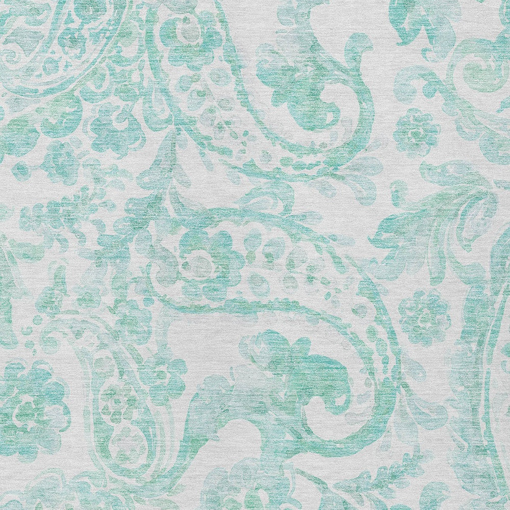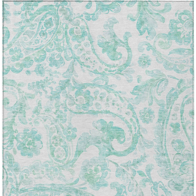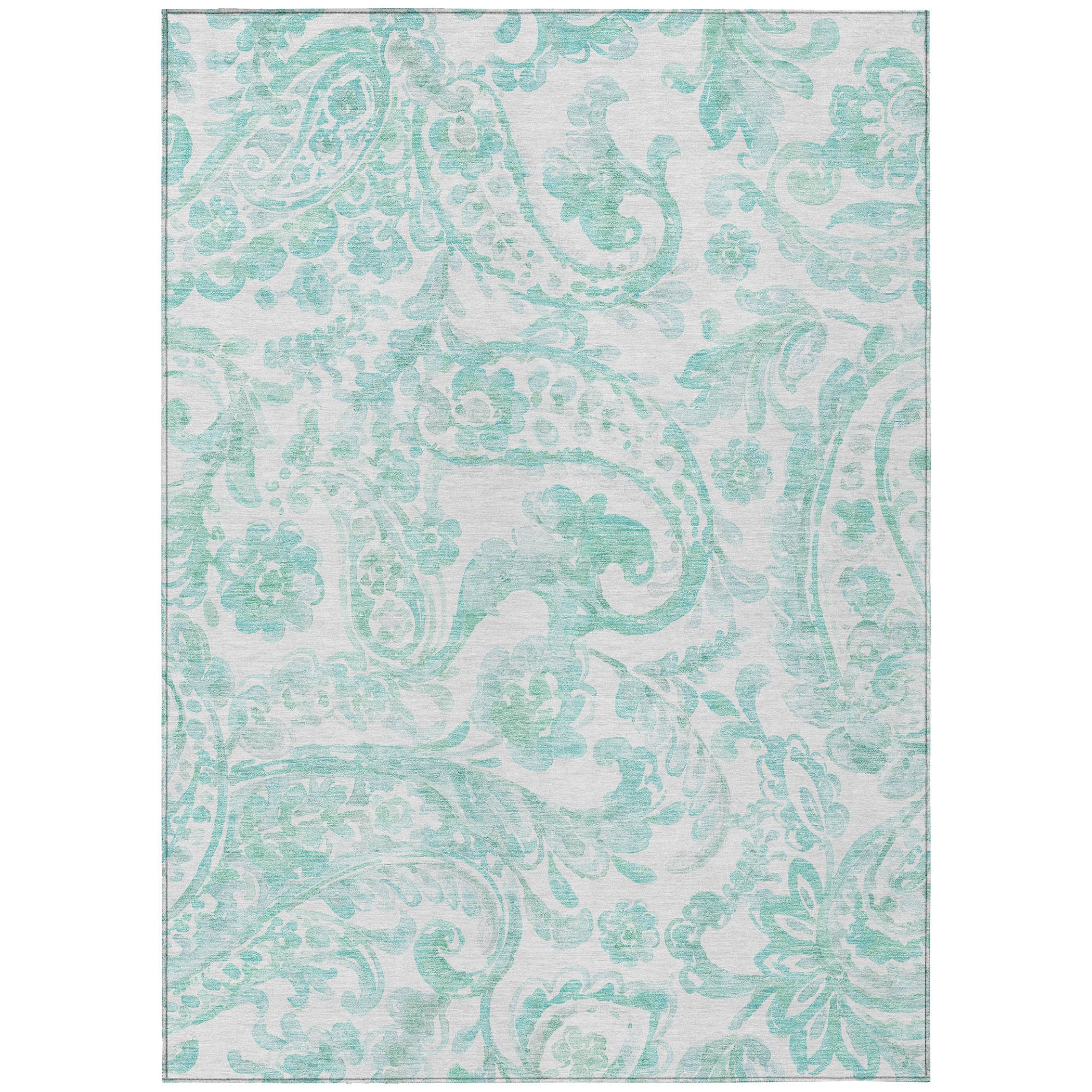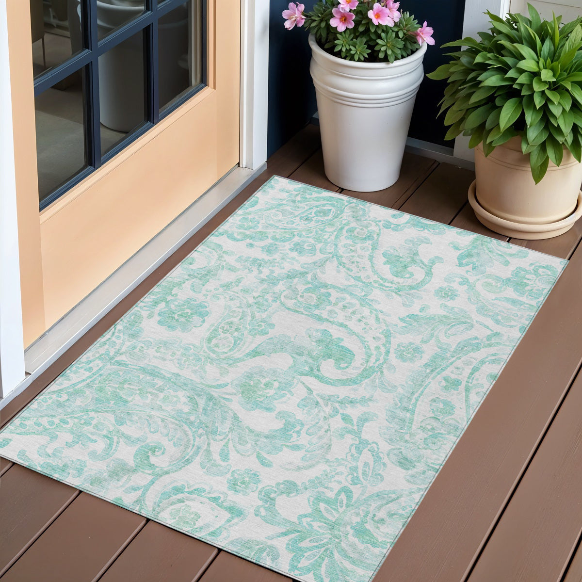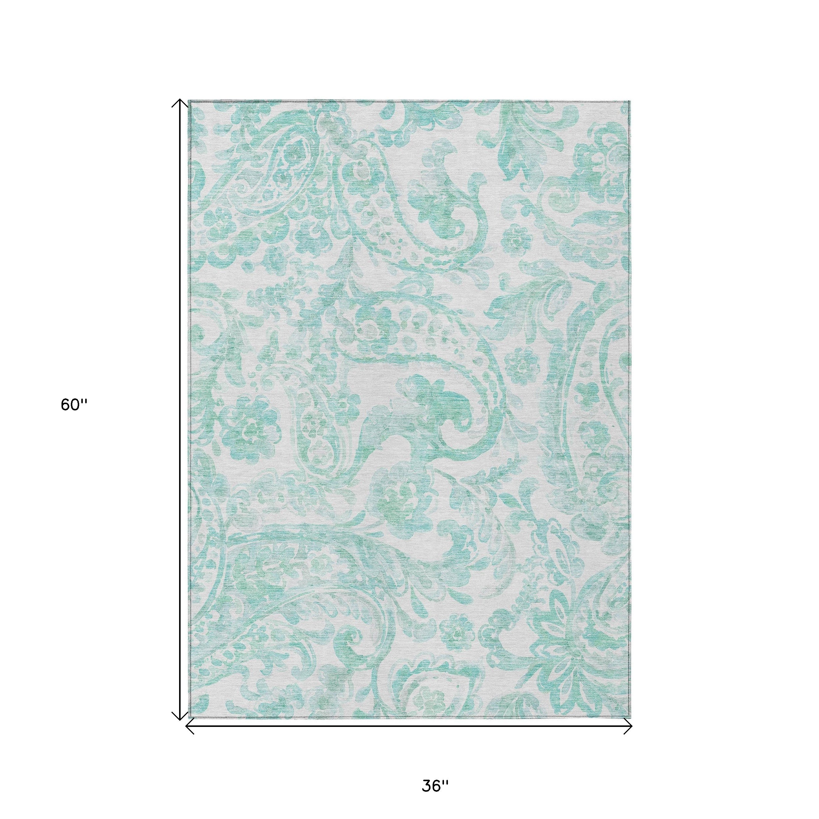3' X 5' Turquoise And Ivory Paisley Washable Indoor Outdoor Area Rug