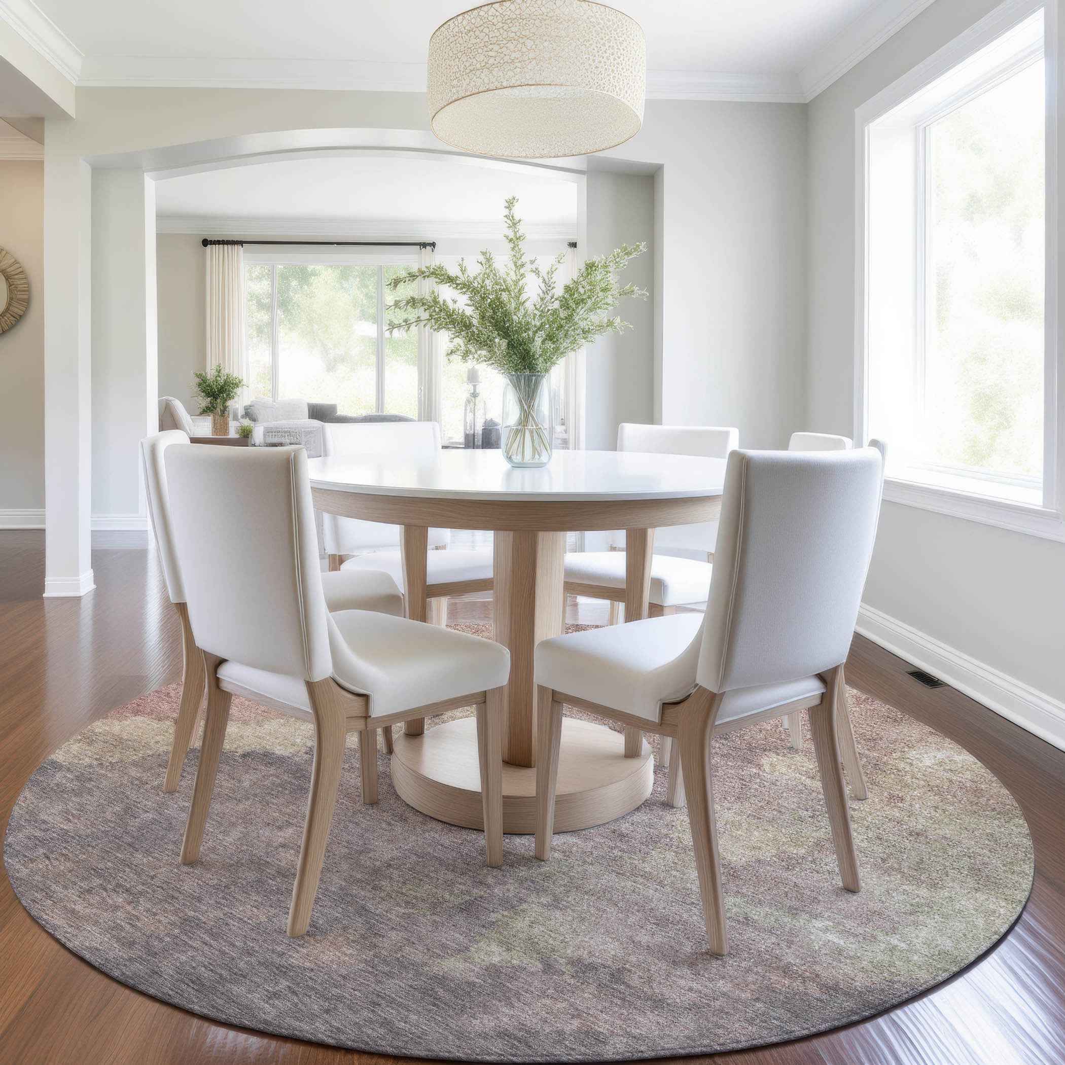 8' Copper And Taupe Round Abstract Washable Indoor Outdoor Area Rug
