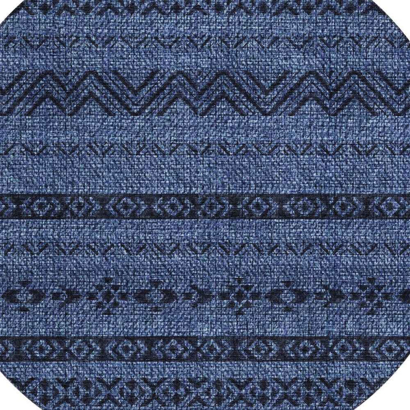 8' Navy Blue And Black Round Southwestern Washable Indoor Outdoor Area Rug