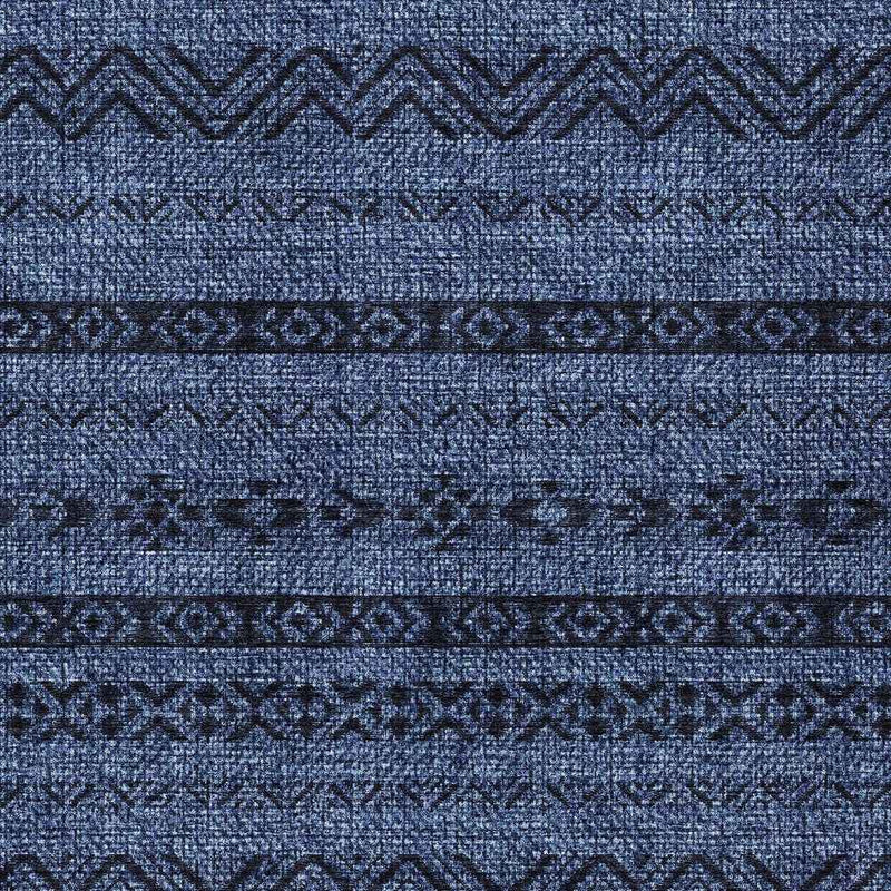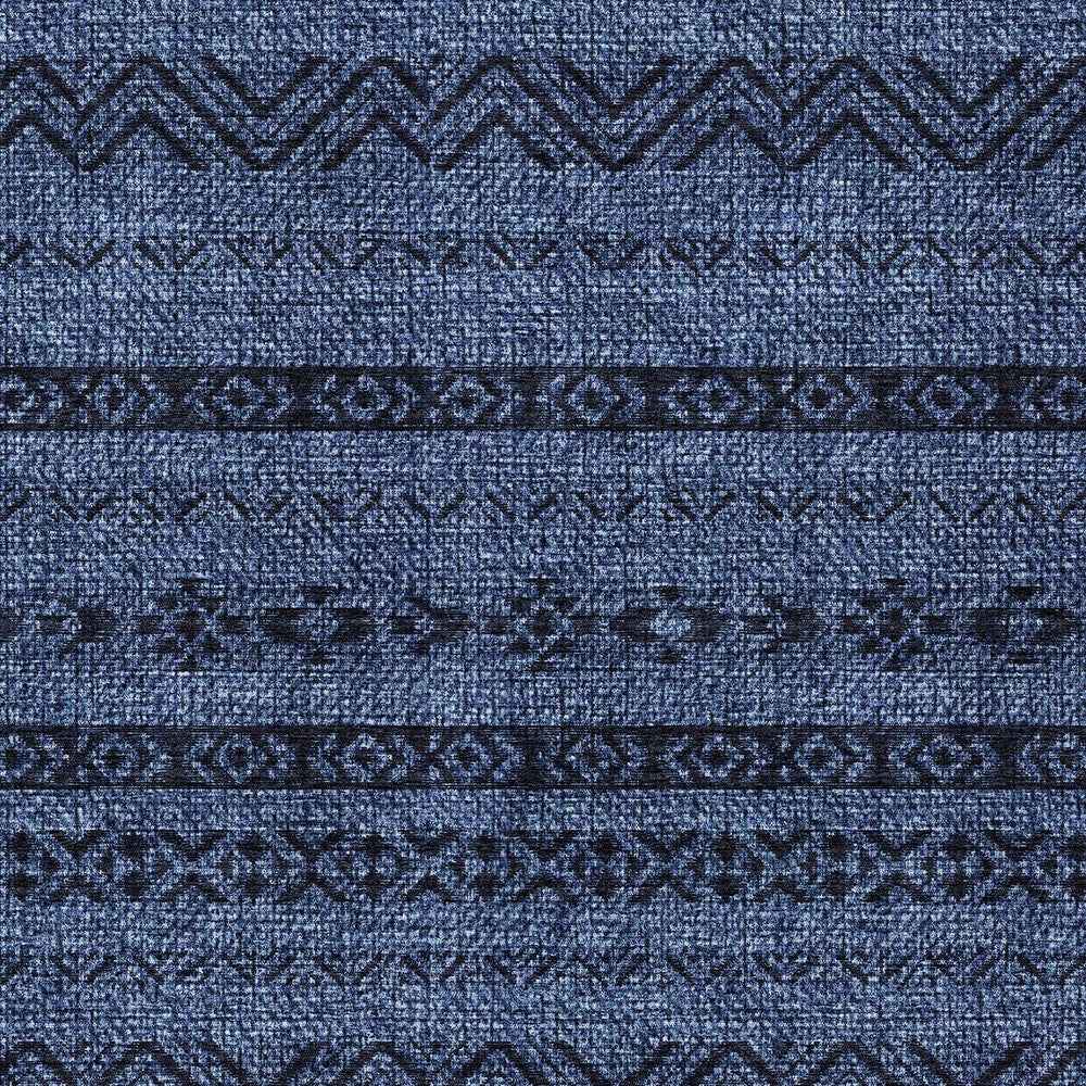 9' X 12' Navy Blue And Black Southwestern Washable Indoor Outdoor Area Rug