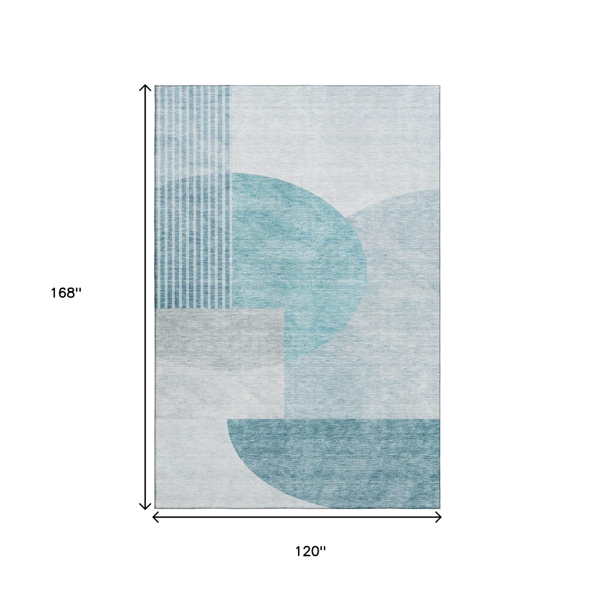 10' X 14' Teal And Ivory Geometric Washable Area Rug With UV Protection