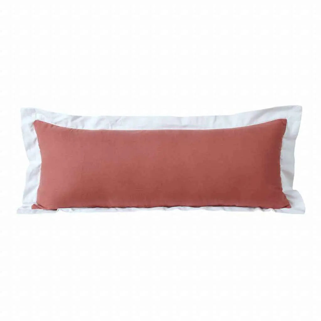 Unique and decorative, this comfortable 14" x 36" deep coral and white 100% cotton geometric zippered pillow will leave a lasting impression. The deep coral and white coloring of the soft and long lasting 100% cotton will add dimension and texture to your space. Decorative throw pillows not only add color and dimension to your space but can be comfy and supportive when you are lounging and cuddling as well. Decorative pillows are a great way to change up the look and feel of your space easily and quickly. 14" H x 14" W x 36" D