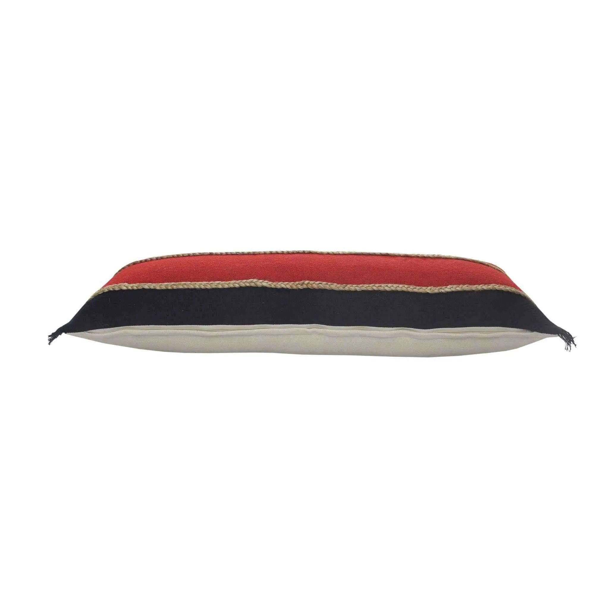 14" X 36" Red Navy And Tan 100% Cotton Striped Zippered Pillow
