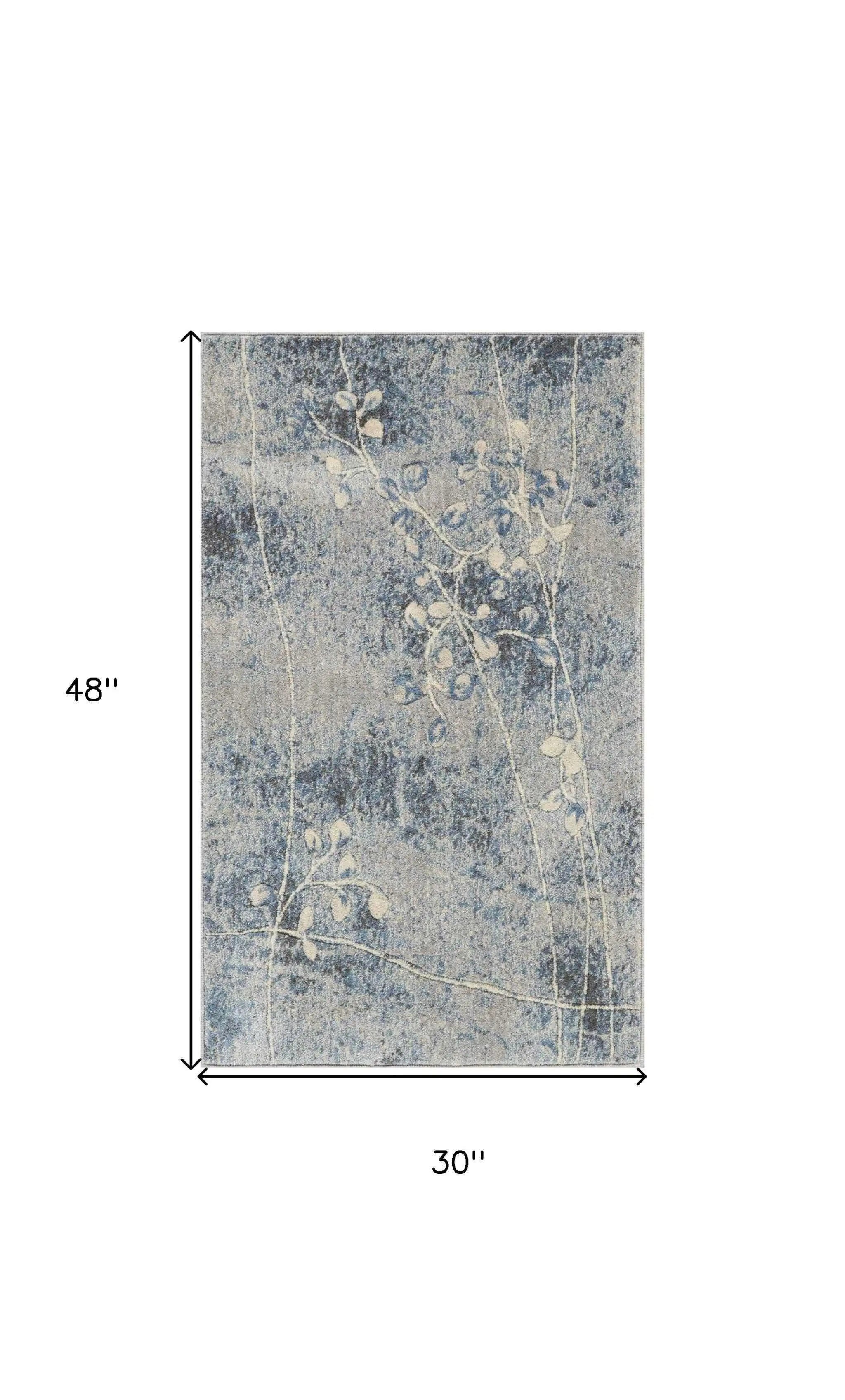 3' X 4' Blue Floral Power Loom Area Rug