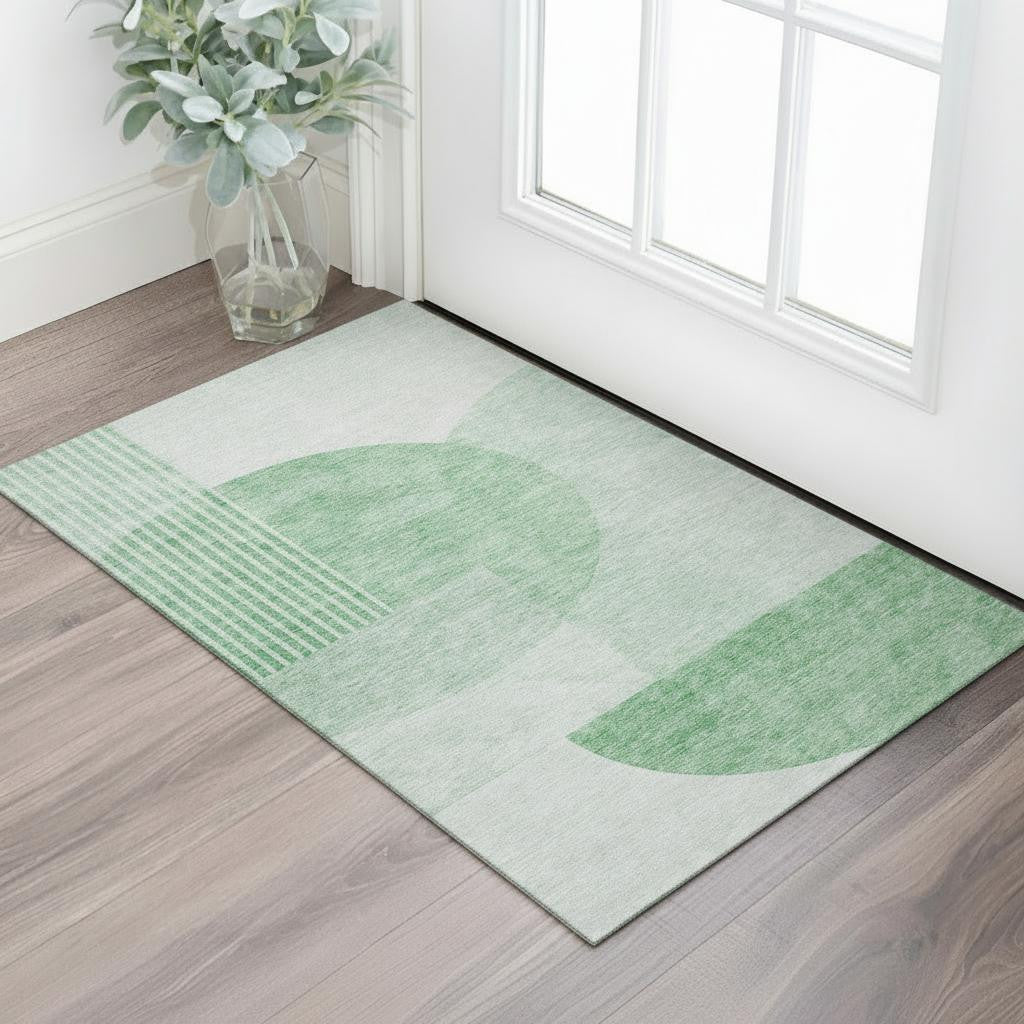 3' X 5' Green And Ivory Geometric Washable Area Rug With UV Protection