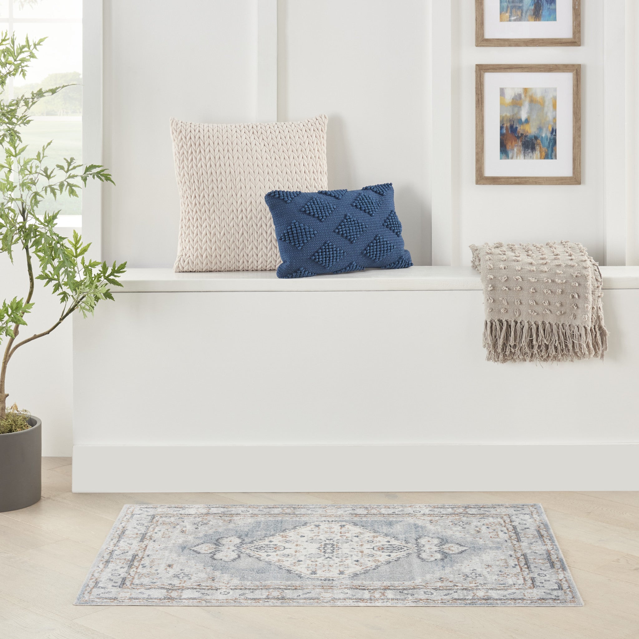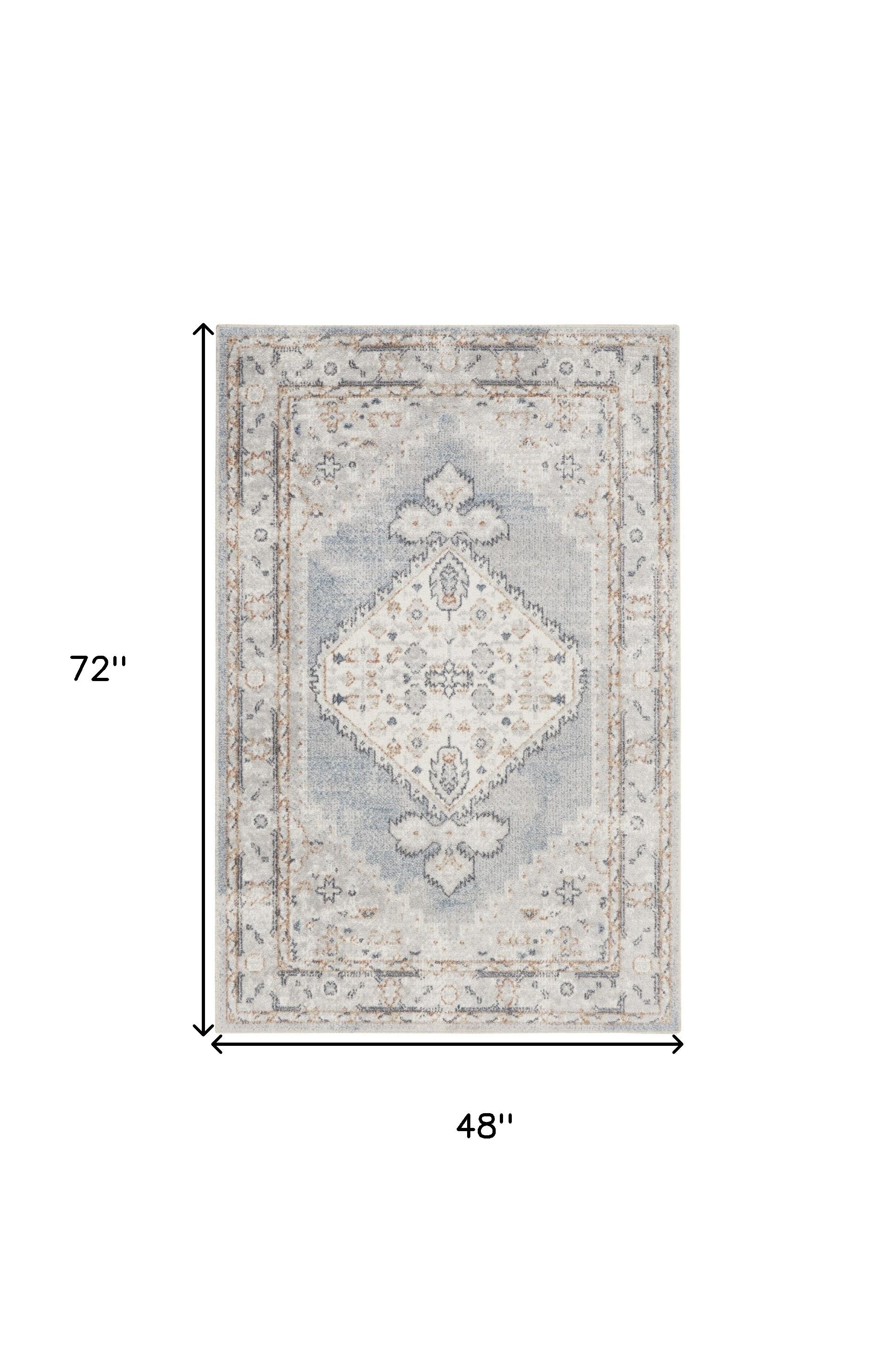 4' X 6' Light Blue Oriental Power Loom Distressed Washable Area Rug