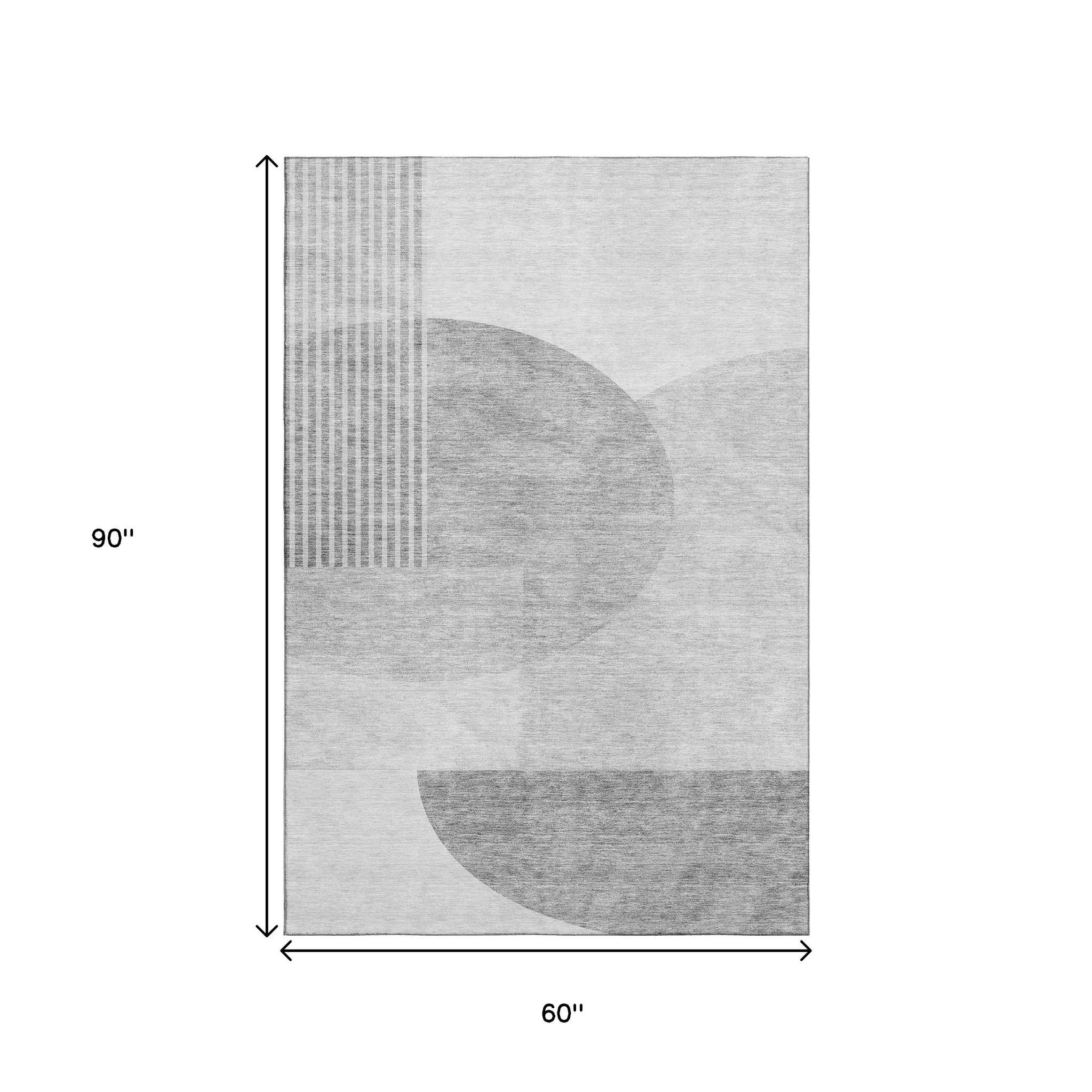 5' X 8' Gray And Silver Geometric Washable Area Rug With UV Protection