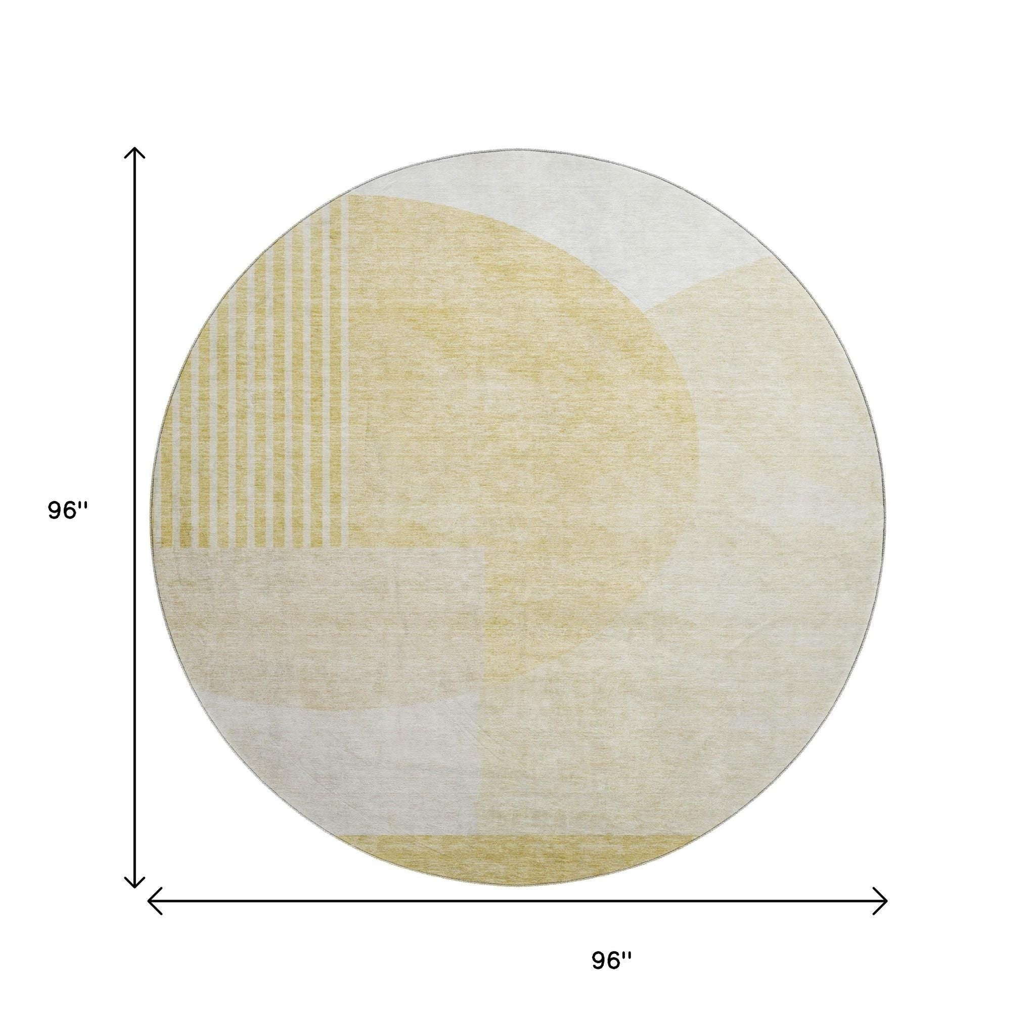 8' Gold And Ivory Geometric Washable Round Rug With UV Protection
