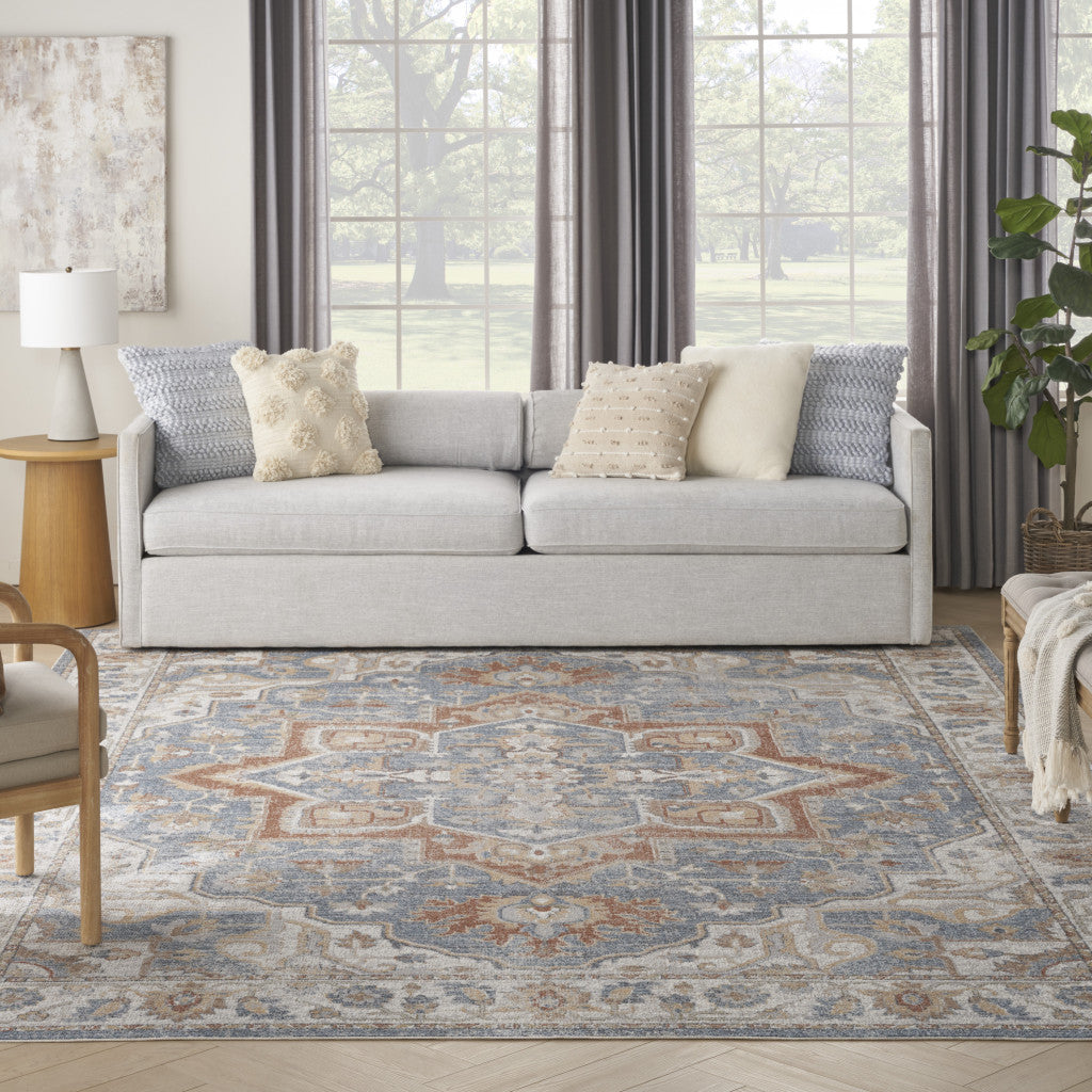9' x 12' Gray Oriental Power Loom Area Rug