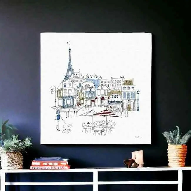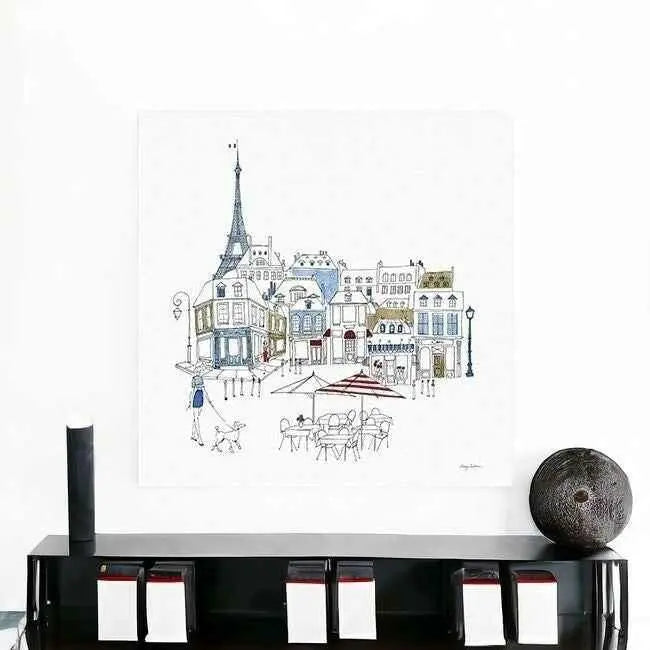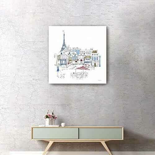 Add an air of fashion to your room and rejuvenate the space with this french caf with red and blue accents unframed print wall art. This print is a visual artistic expression that allows you to decorate your space in style. Reproduced for you on canvas, this hanging decorative accent will be a trendy and fashionable way to dress your walls. Hang on your wall to add some up to date fashion and decoration. Instantly liven up your space with this art that brings color and dimension to your walls. 40 inches H x 40 inches W x 1.25 inches D