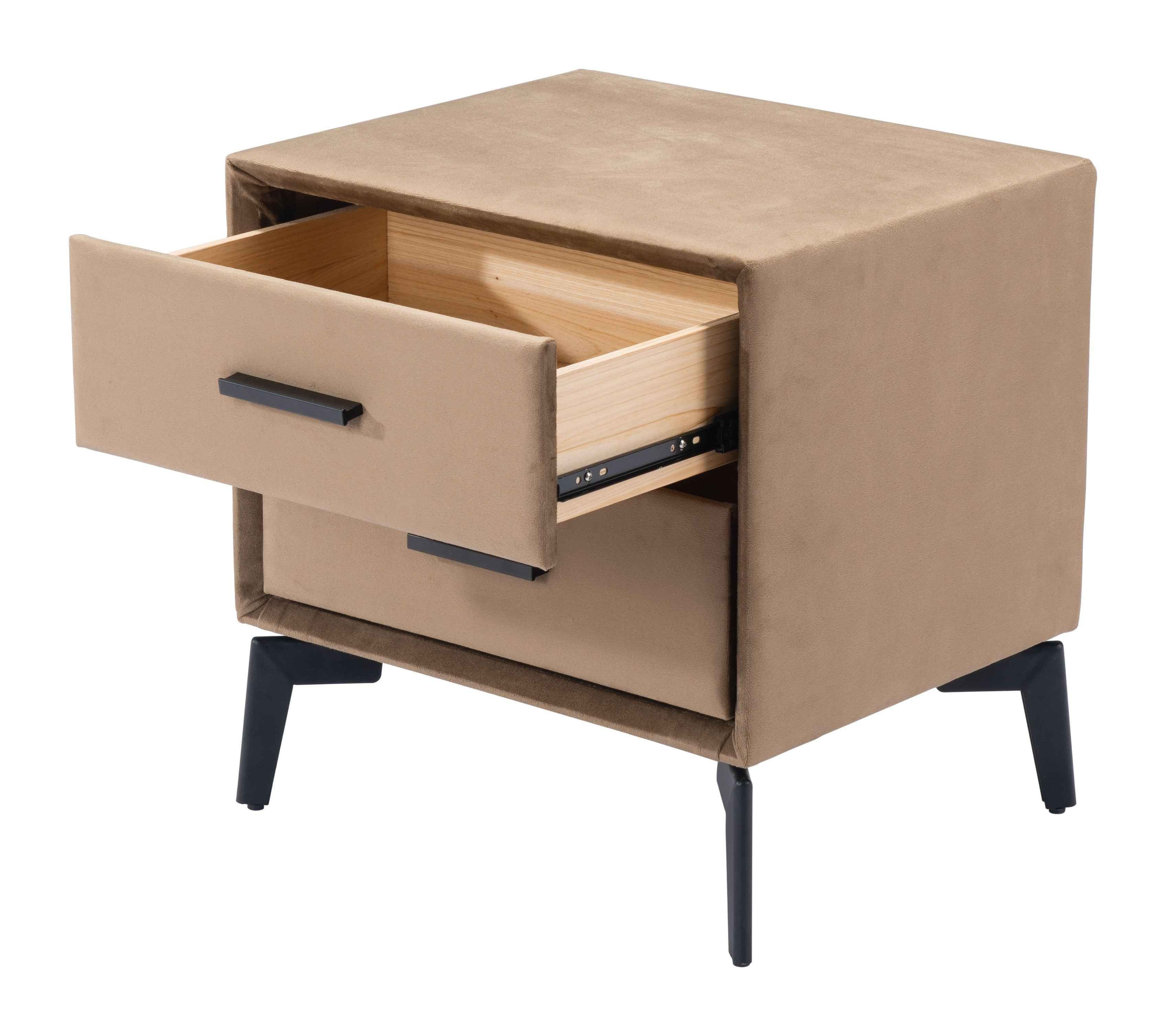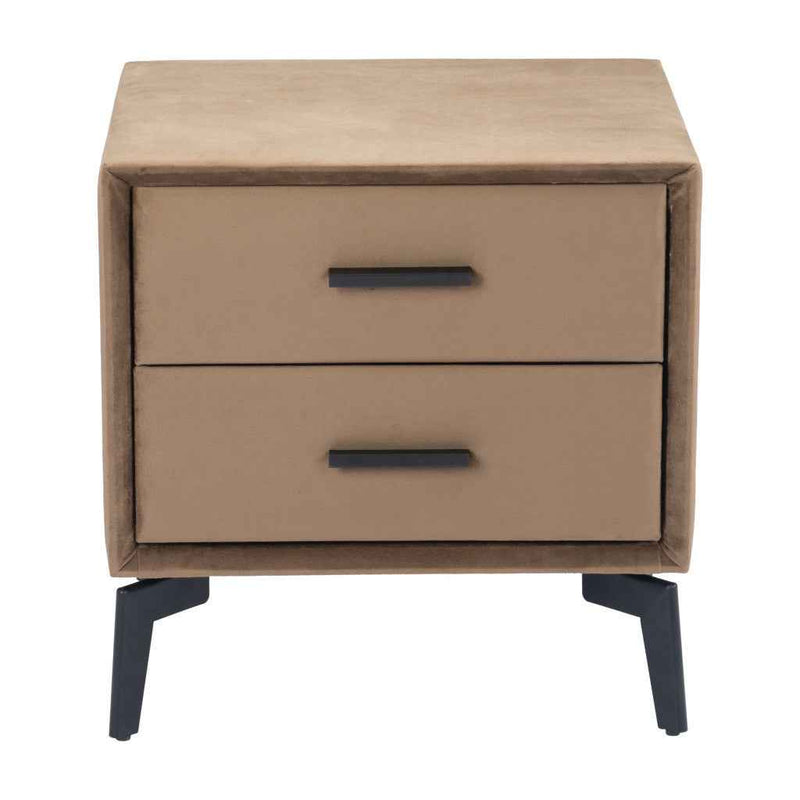 20" Brown and Black Velvet Wood and Steel End Table With Two Drawers
