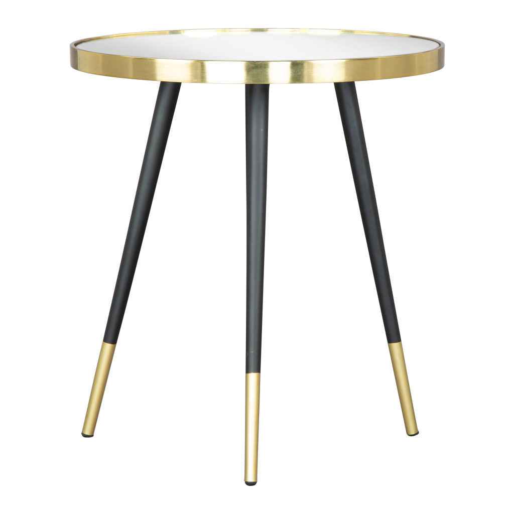 20" Gold and Black Mirrored Glass and Iron Round End Table