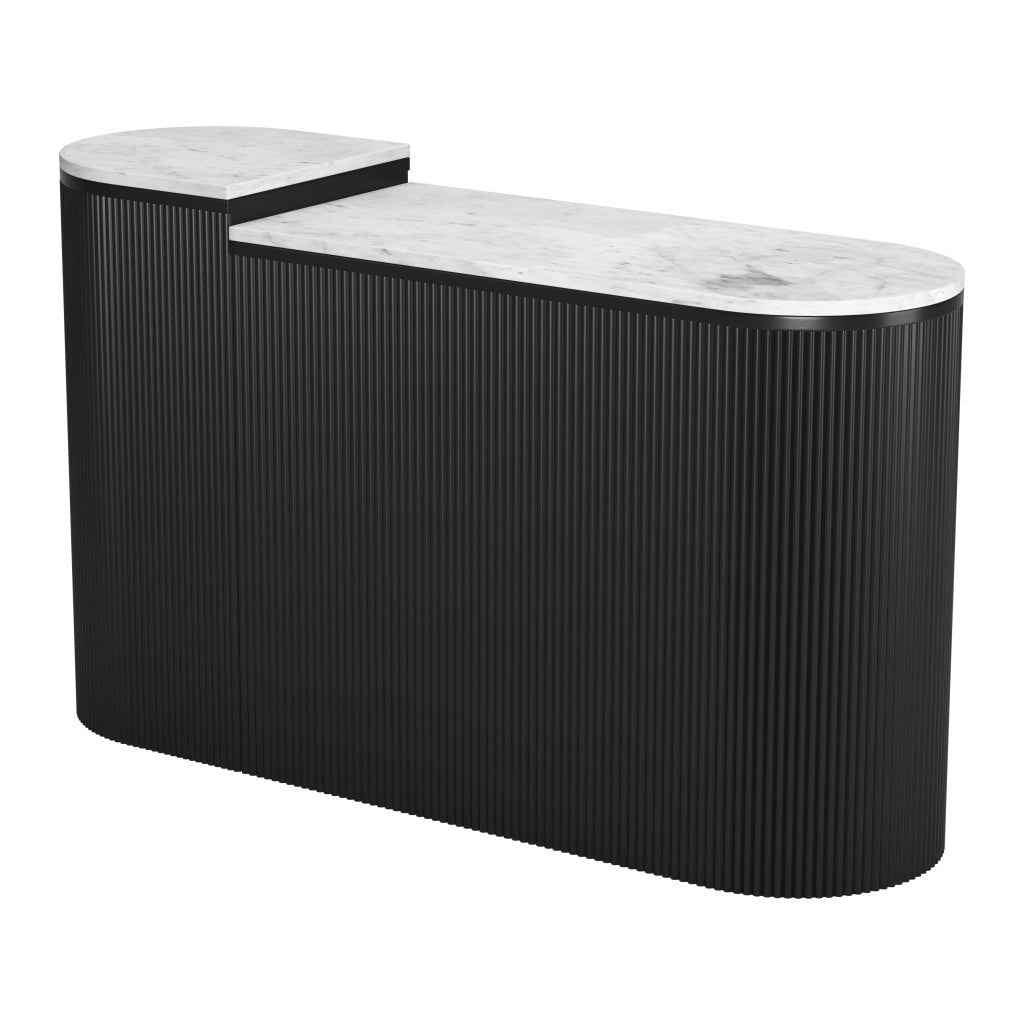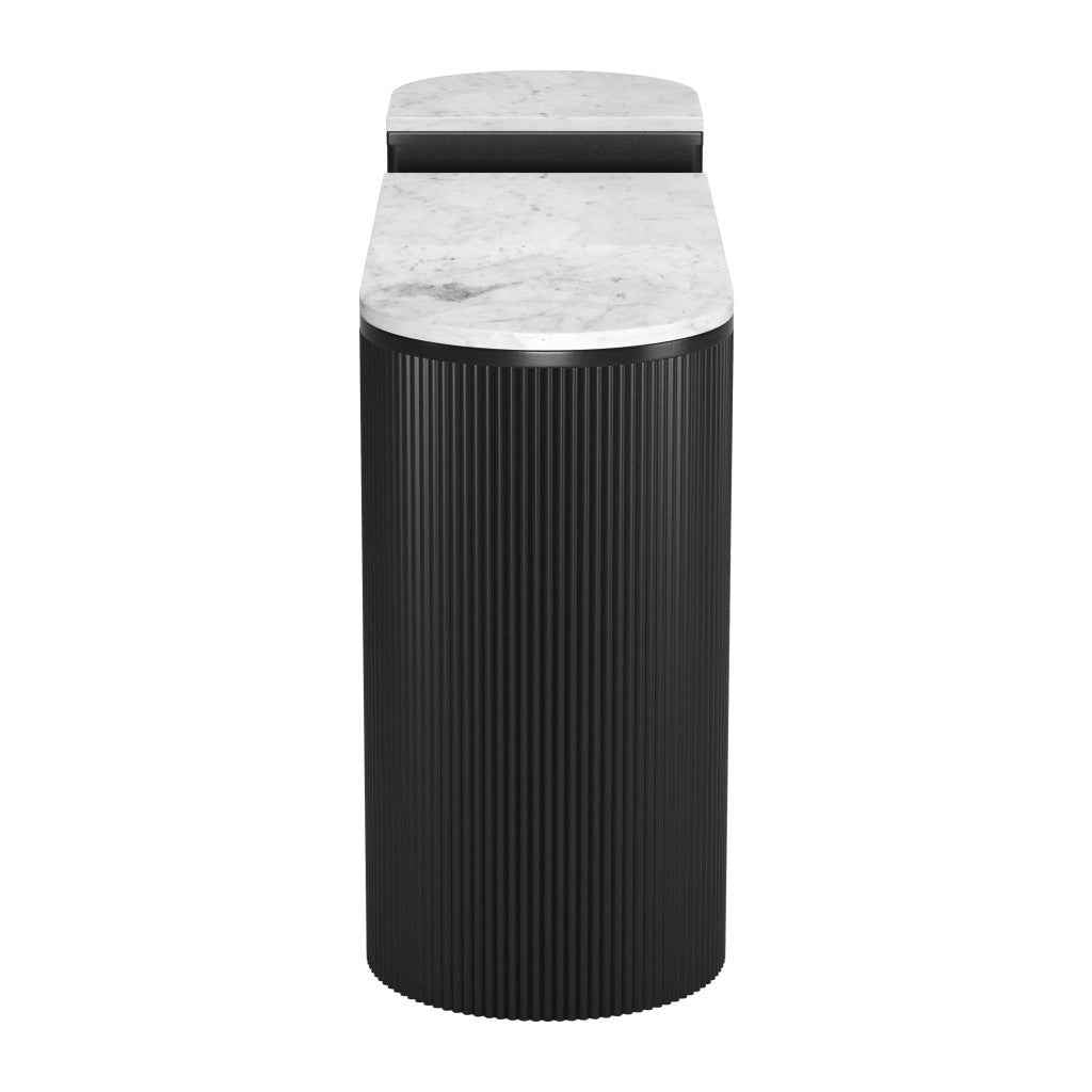 Set of Two 35" White and Black Genuine Marble and Solid Wood Oval Solid Console Tables