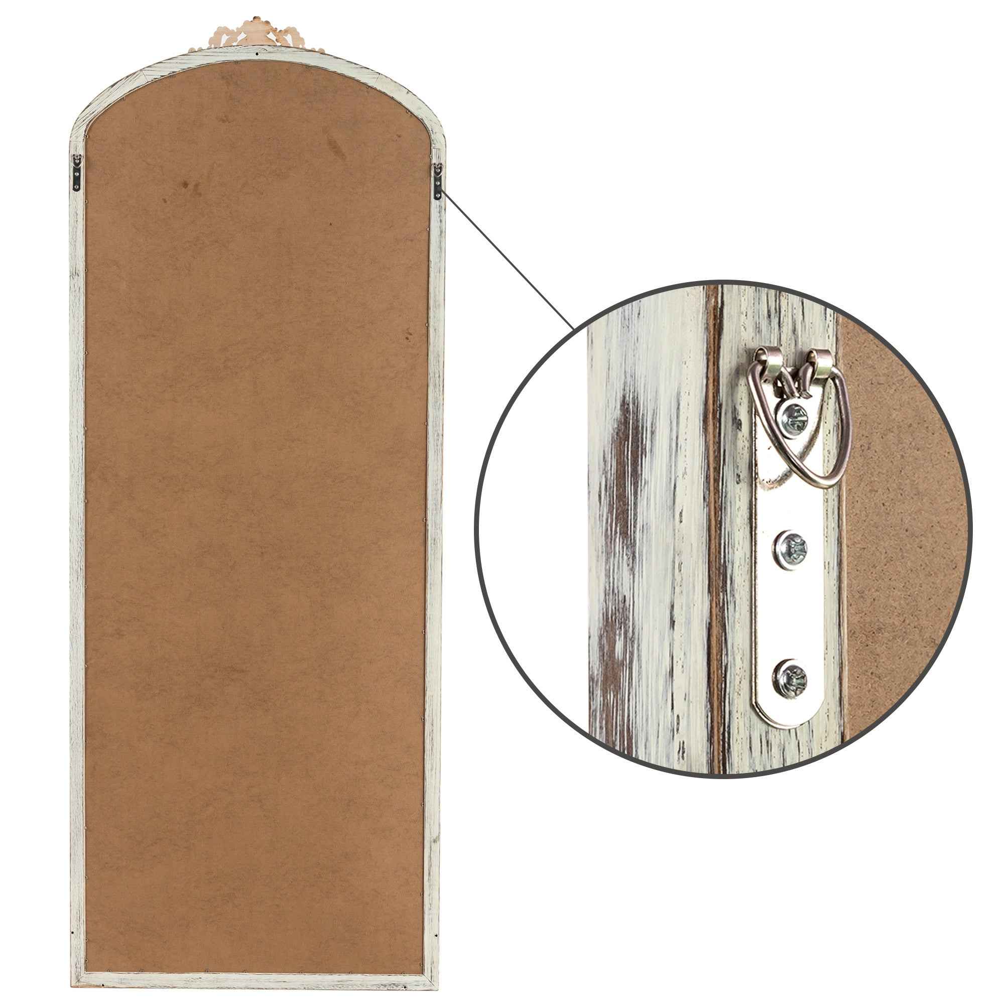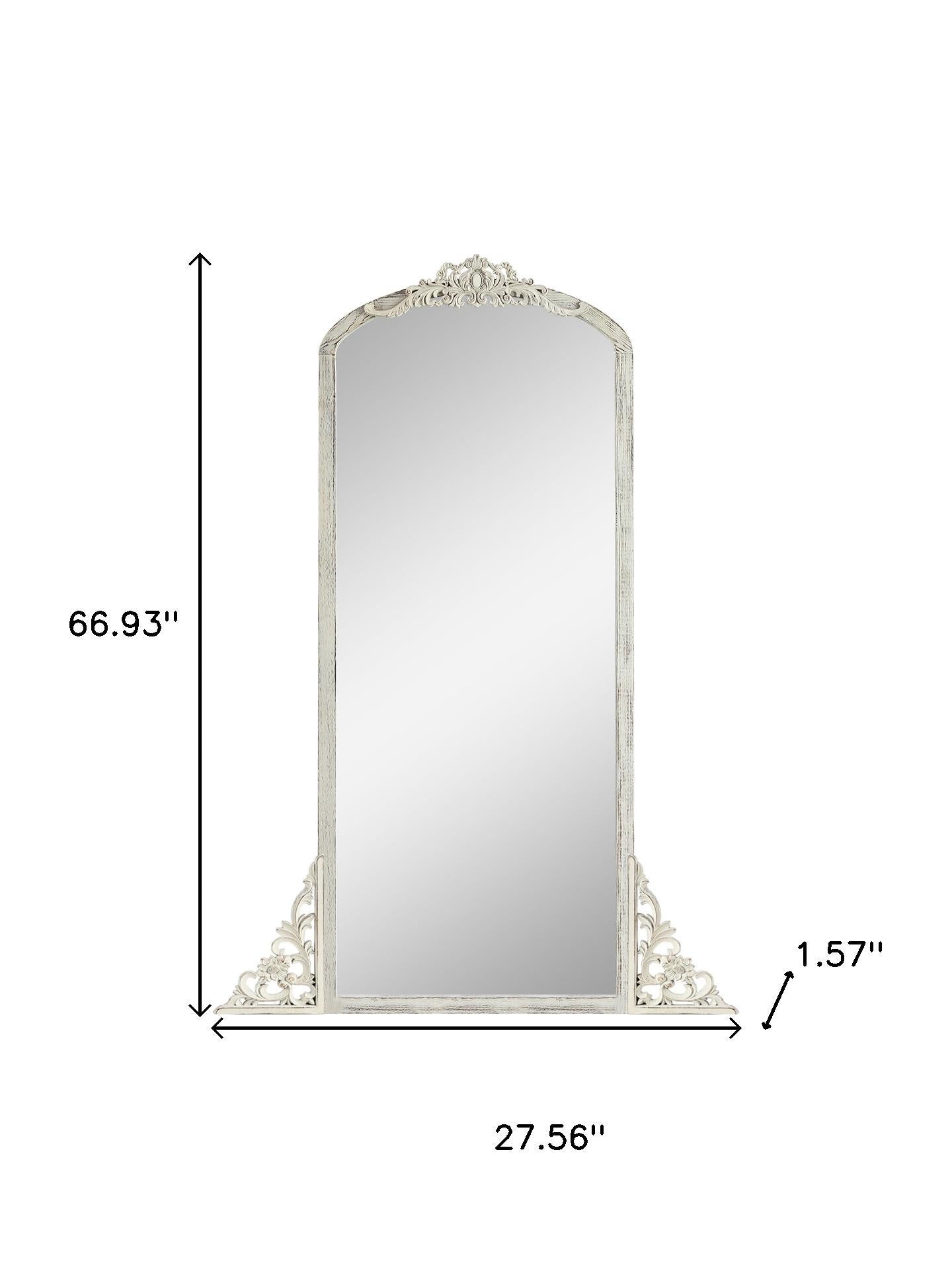 White Wood Arch Freestanding Ornate Framed Accent Mirror