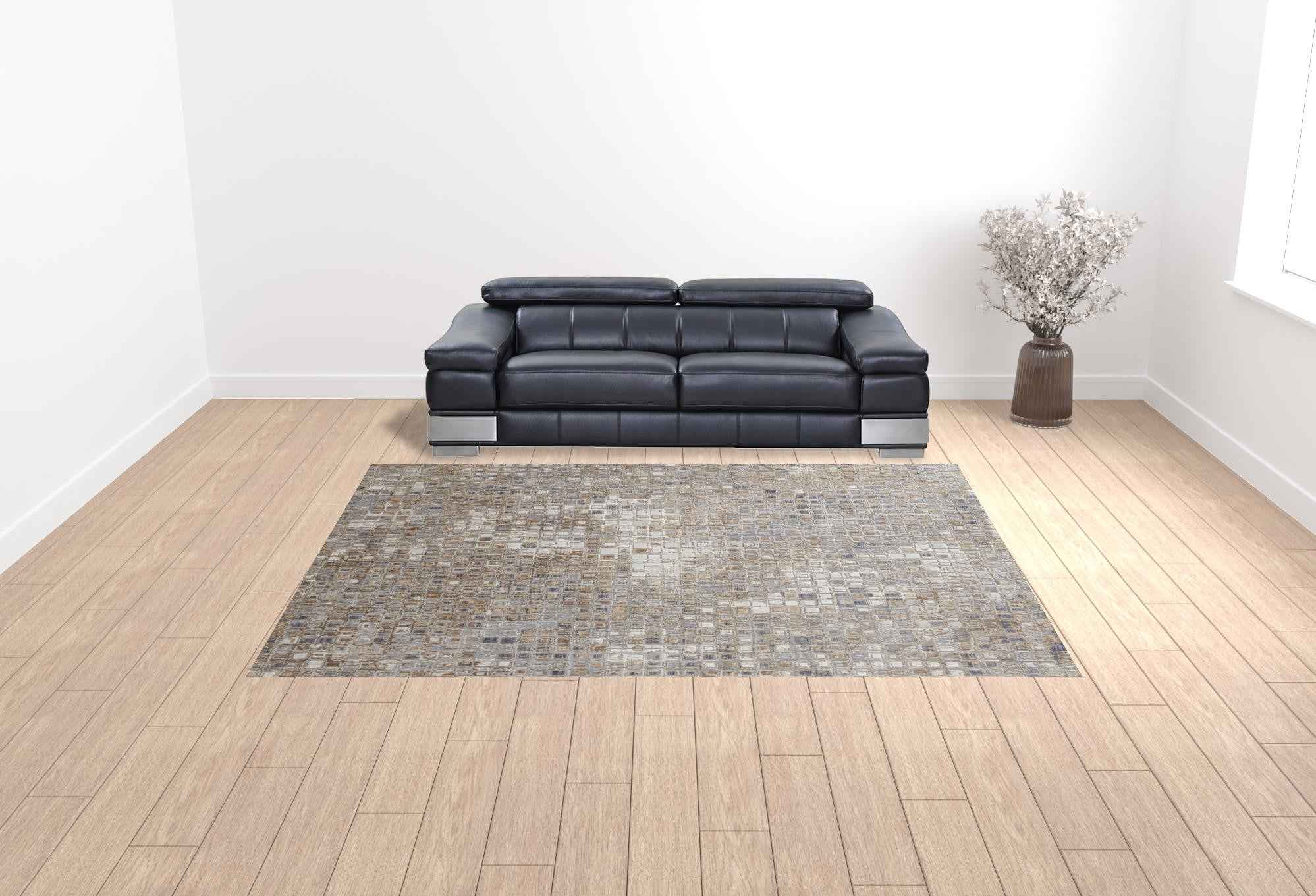 Set an inviting tone in your space with this 10' x 13' tan ivory and blue geometric power loom distressed area rug. This rectangle shaped rug features a geometric design in tan ivory and blue to give it visual interest. A classic shape marries with good looking design for your space This superior Turkish rug represents the highest quality and is built to last. Place this area rug against a hardwood or tile floor and it will enliven your living space with style and sophistication. 0.28" H x 116" W x 152" D