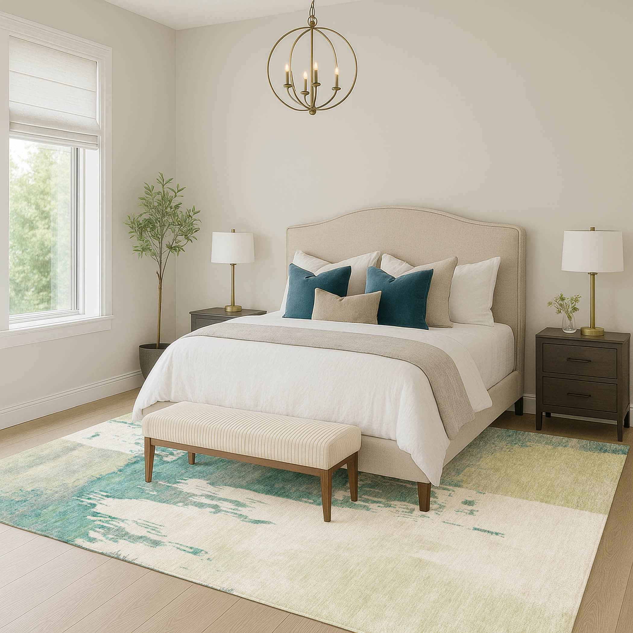 10' X 14' Artichoke Green Ivory And Aqua Abstract Washable Indoor Перейти к содержанию
