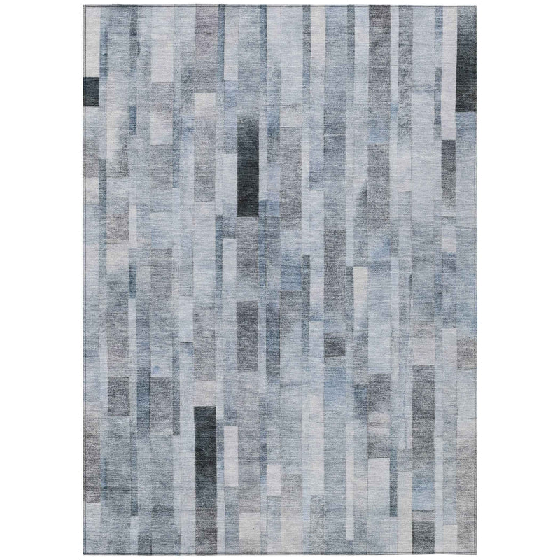 10' X 14' Blue And Gray Striped Washable Indoor Outdoor Area Rug
