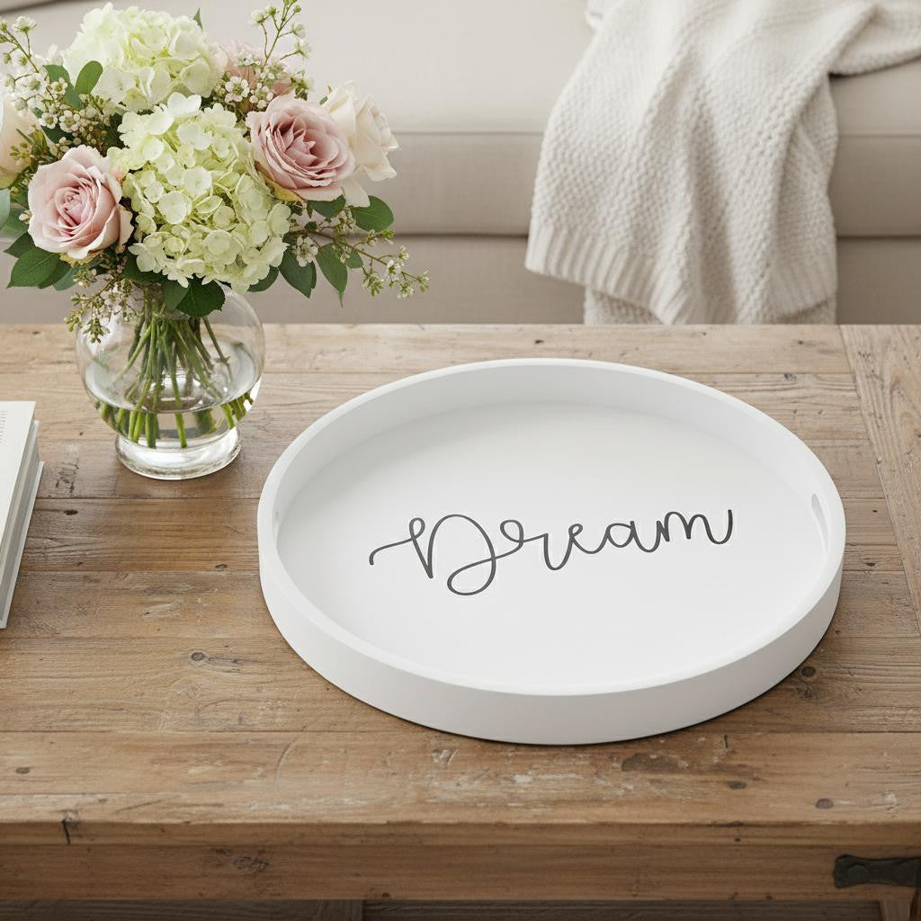14" White And Black Dream Round Serving Tray With Handles - Перейти к содержанию