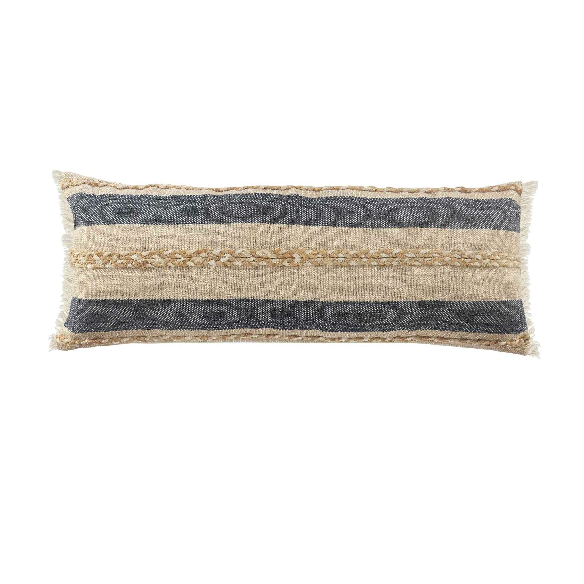 14" X 36" Denim Tan And Taupe Jute Coastal Zippered Pillow