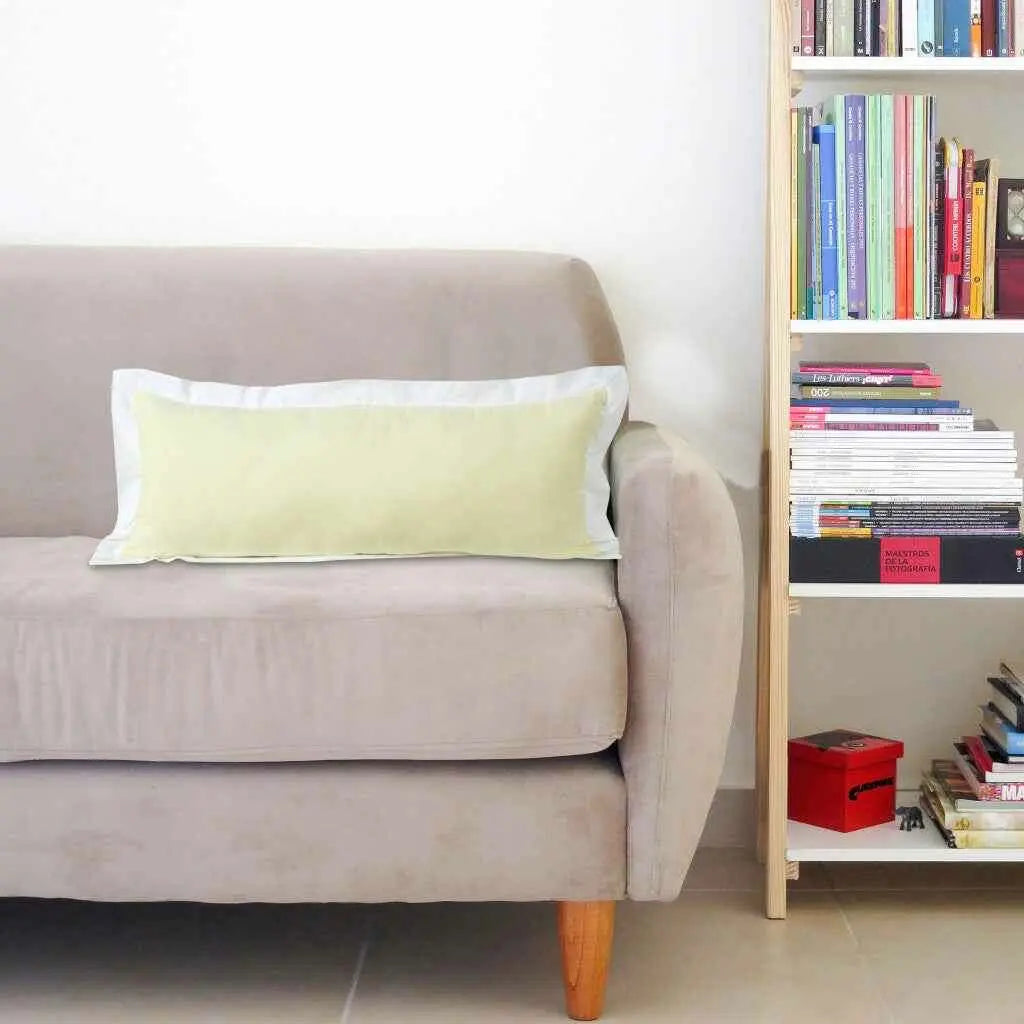 Bring a bit of fashion and zip to your space with this eye-catching and comfy 14" x 36" light yellow and white 100% cotton geometric zippered pillow. Soft and textural light yellow and white 100% cotton has been used to make this pillow look and feel like a real treasure. Great to use on its own or mix with other decorations for the perfect look. Decorative pillows are a great way to change up the look and feel of your space easily and quickly. 14" H x 14" W x 36" D