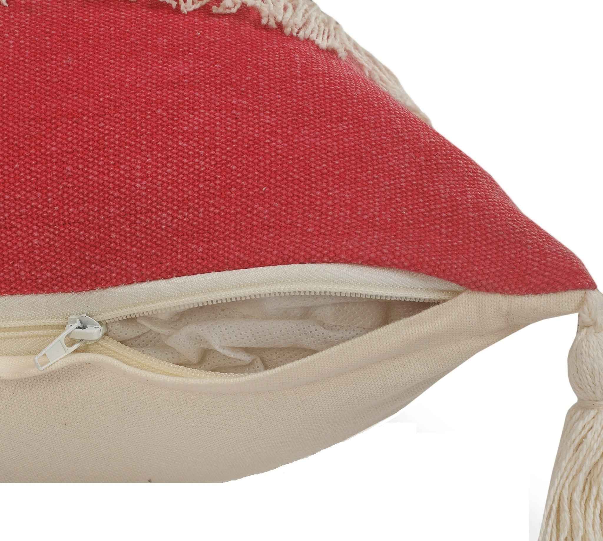14" X 36" Raspberry Red And Off-White 100% Cotton Zippered Pillow
