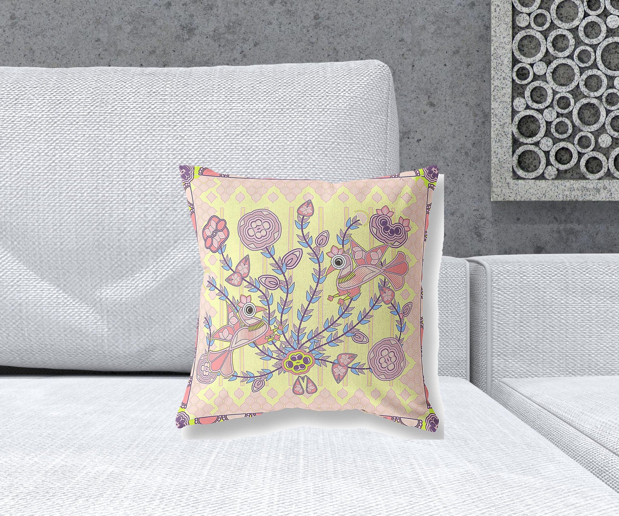 This 16" x 16" yellow bird blown seam floral indoor outdoor throw pillow will add a beautiful decorative accent to your decor. This yellow colored decorative pillow is made from high grade broadcloth that is durable and long lasting. Will add some color and dimension to your space indoors or out. Decorative pillows are a great way to change up the look and feel of your space easily and quickly. 5" H x 16" W x 16" D