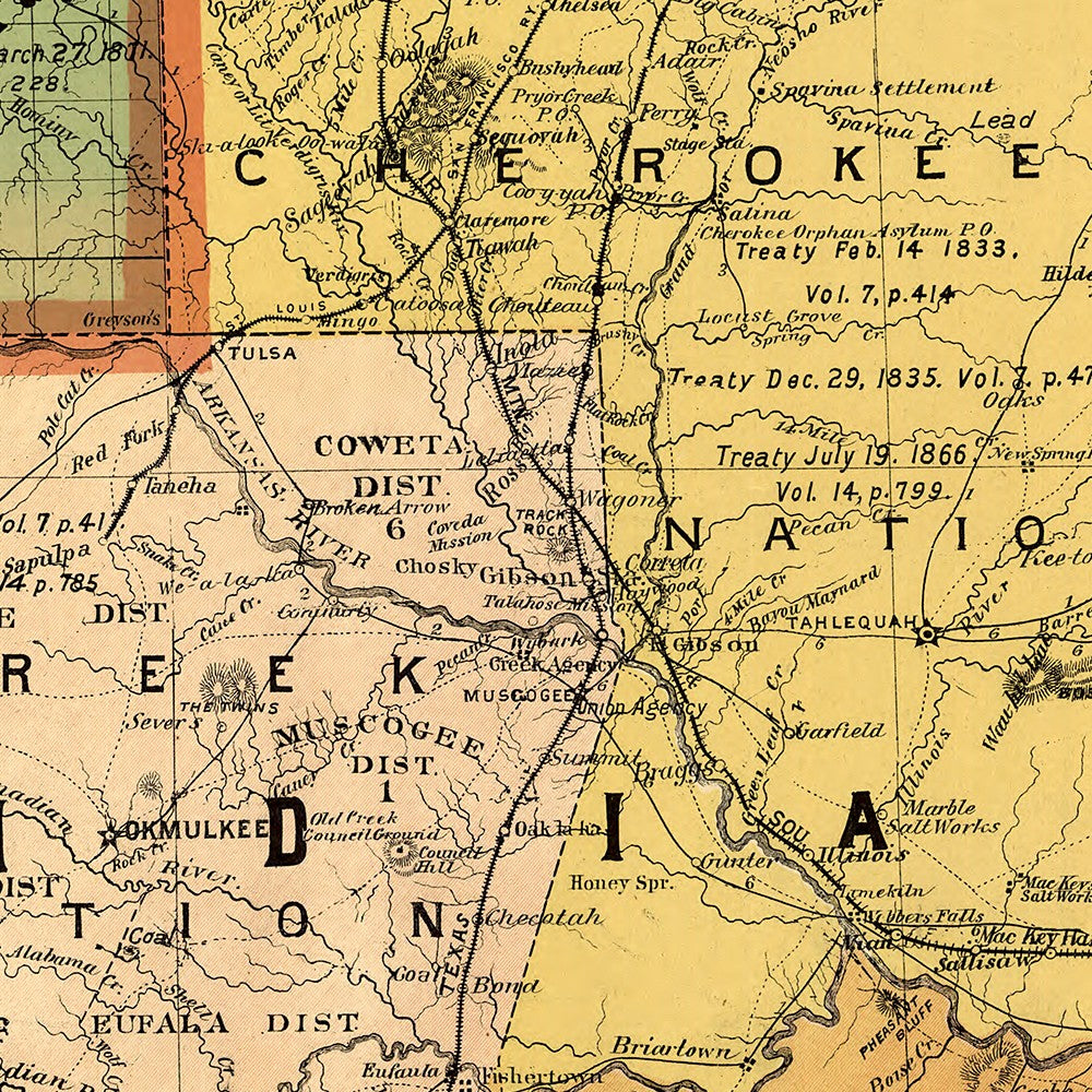 20" X 28" Map Of Indian And Oklahoma Territories Vintage Poster Wall Art