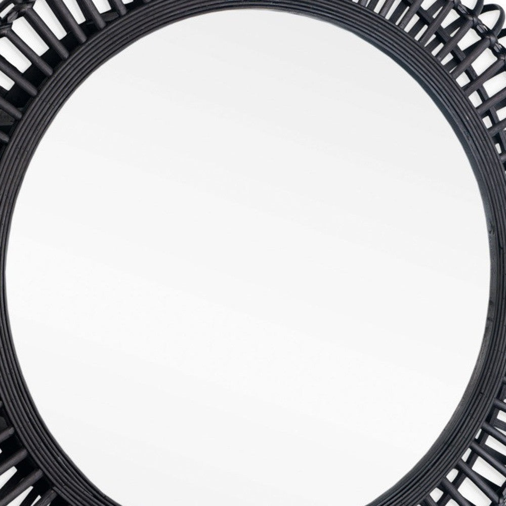 31" Black Bamboo Pierced Round Accent Mirror