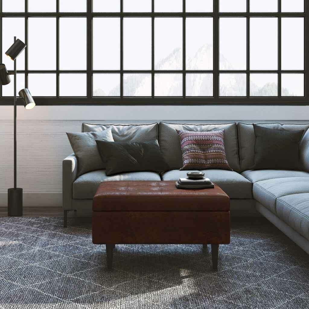 34" Brown Upholstery Storage Ottoman