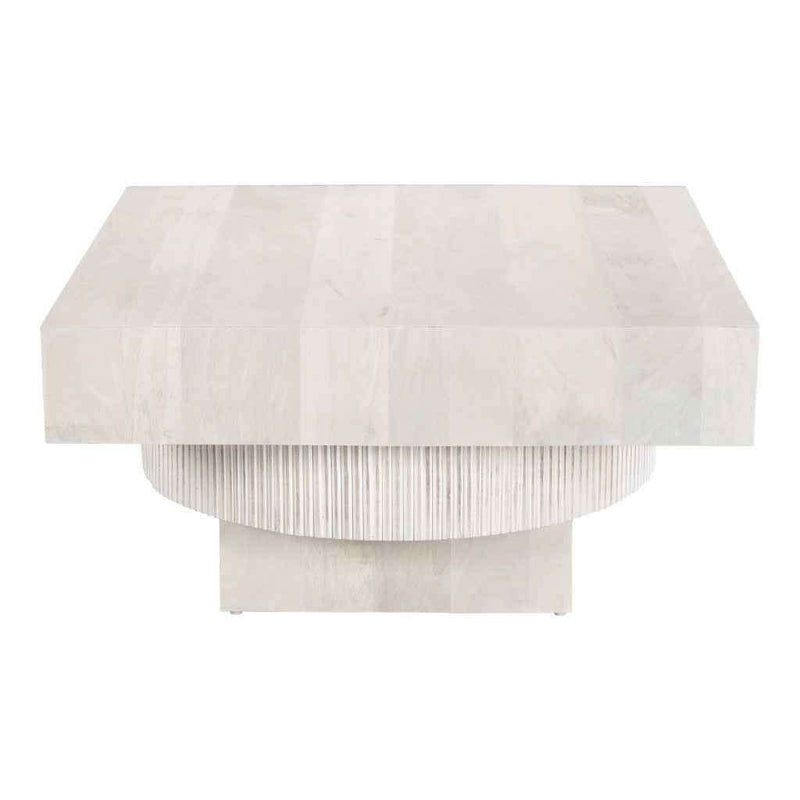 36" Natural White Solid Wood Square Geo Pedestal Coffee Table