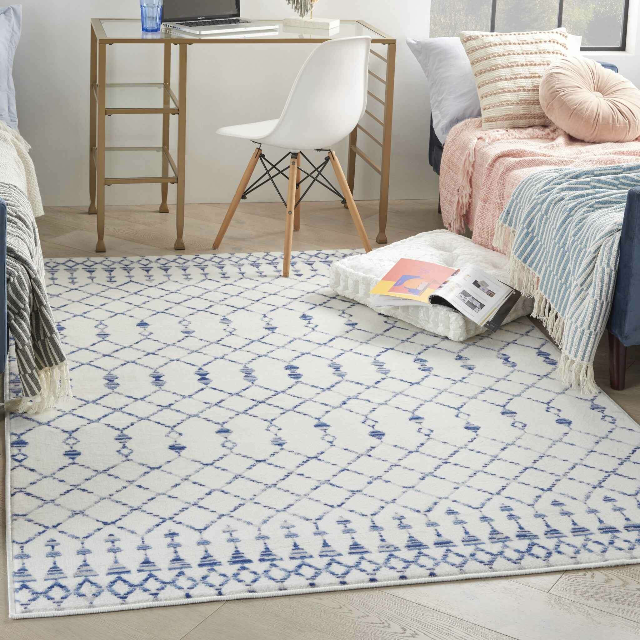 Set an inviting tone in your space with this 4' x 6' ivory geometric berber area rug. This rectangle shaped rug features a geometric design in ivory to give it visual interest. A classic shape marries with good looking design for your space The coloring of this rug adds a delightfully neutral tone to your home and will easily match with most any decor. Place this area rug against a hardwood or tile floor and it will enliven your living space with style and sophistication. 1" H x 48" W x 72" D