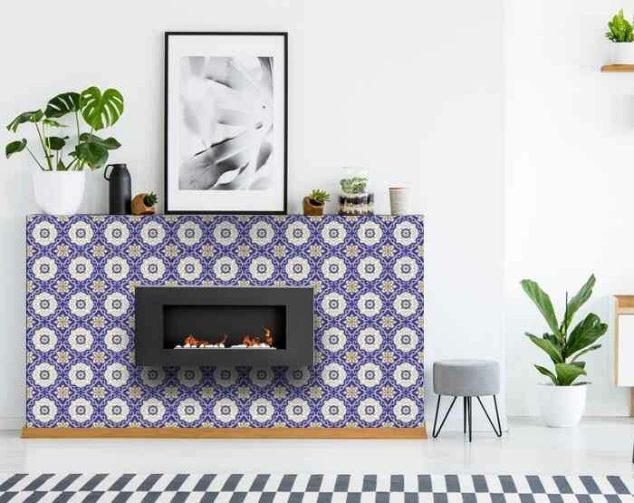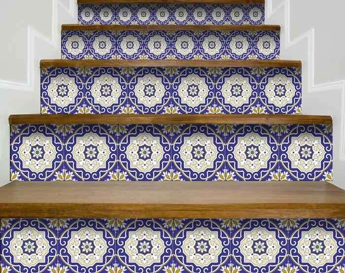 Easily add in gorgeous color and interest to your space with these 5" x 5" Blue White and Gold Mosaic Peel and Stick Removable Tile stickers. These fabulous peel and stick tiles will add lots of color, sophisticated flair, and fun design to your kitchen backsplash, fireplace mantel, stair treads, half wall, bathroom or nook. These 5" square tile stickers in multiple bright fun colors and designs are an easy, no mess solution to complete a personalized and colorful room makeover. Easy to apply on any clean dry flat surface, and easy to remove. Multi use and multi-room appeal make this design option is perfect for renters, landlords, college students and homeowners alike. Peel and stick tile decals make it easy to turn your space into a home. Removable without damage to surfaces. One kit contains 24 stickers. Kit includes a single style tile design.