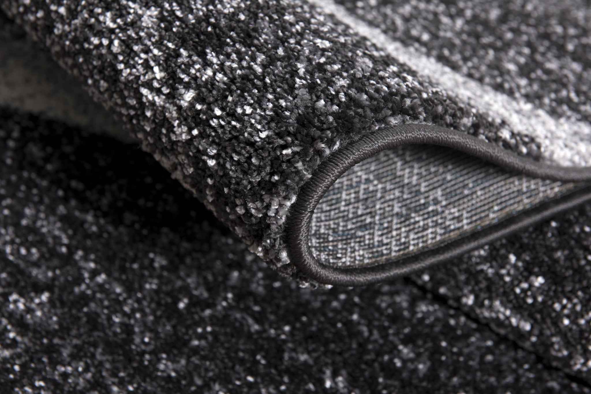 The enigmatic glow of this Distressed Black and Gray Abstract Area Rug will allure the gaze of the guests while adding a sleek and stylish appeal to your modern living space. Flaunting some eclectic bands in the cool-toned ivory, gray, and blue over a distressed black base for visual intrigue. Made to last long without losing its gloss, this rug is woven in Turkey with 100% premium polypropylene which is not only durable but also stains and fade resistant. Place this practical rug in your bedroom, dining area, living room, or hallway and experience the softness and richness from its high pile construction that feels luxurious on the touch. Combing the sophisticated hues in a compact design, this rug will add a stylish edge to your home while tying together the aesthetics of your contemporary setting. 89” x 63” x 0.8”