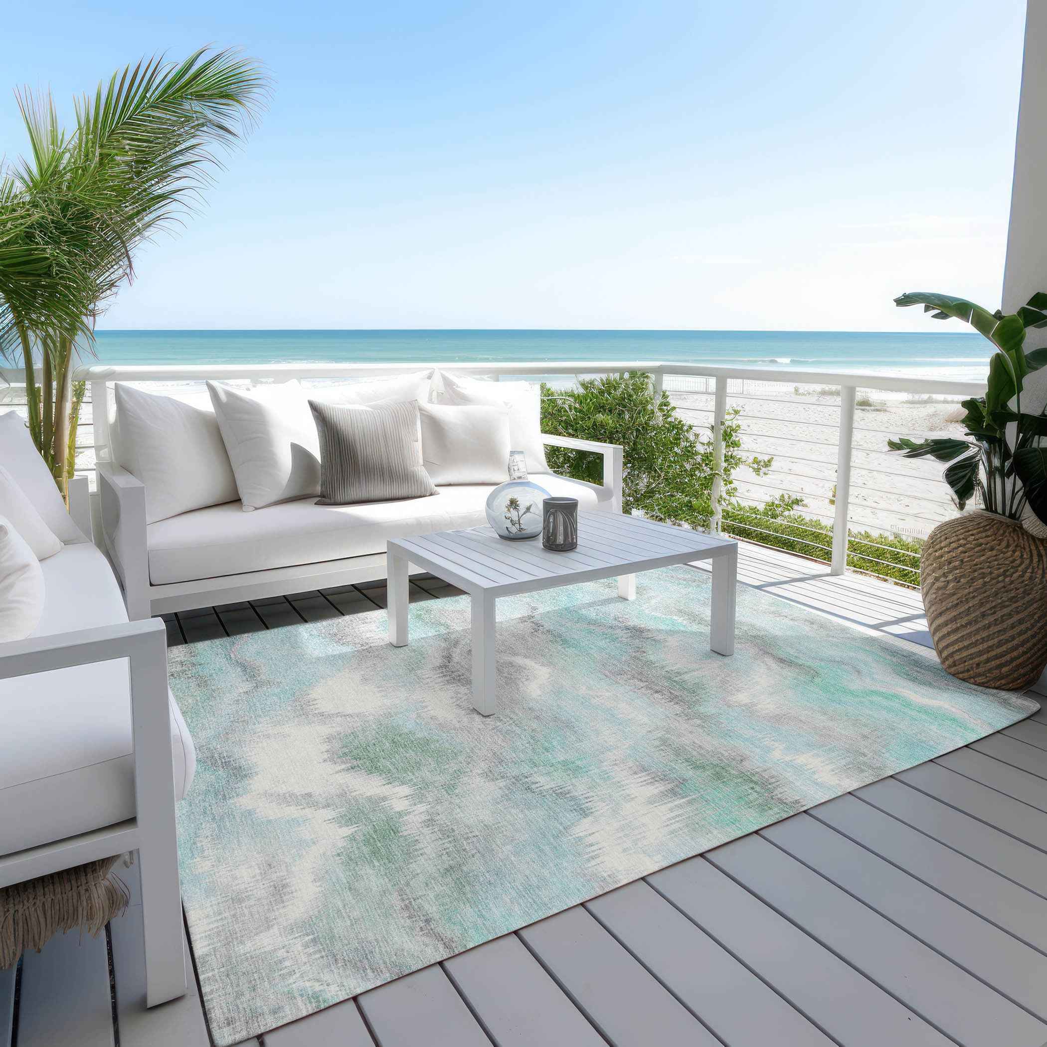 Add some artistry to your room with this 5-foot x 8-foot teal blue and ivory abstract washable indoor outdoor area rug. This rectangle shaped rug features a abstract design that will work well both indoors or out. A classic shape marries with good looking design for your living room, hall, bedroom, porch, patio, or poolside. Ideal for outdoor spaces or high traffic areas with kids and pets, this rug is made from heavy duty polyester that is stain resistant to help repel water, dirt, and stains. Makes a great way to dress up your patio, porch, or poolside, but also works well as a durable and easy to maintain option in the kitchen, family room, or mudroom. 60-inch h x 90-inch w x 0.19-inch d.