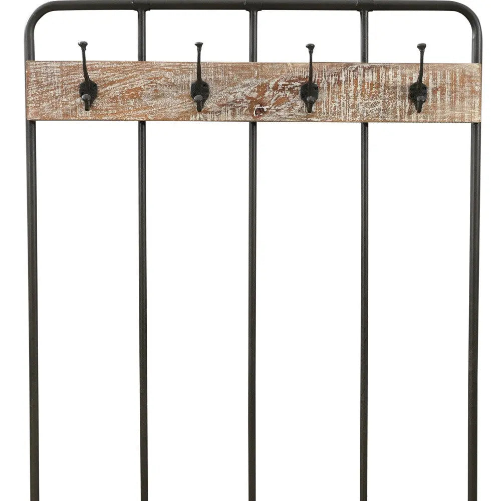 71" Black And Brown Metal And Solid Wood Four Hooks Freestanding Coat Rack