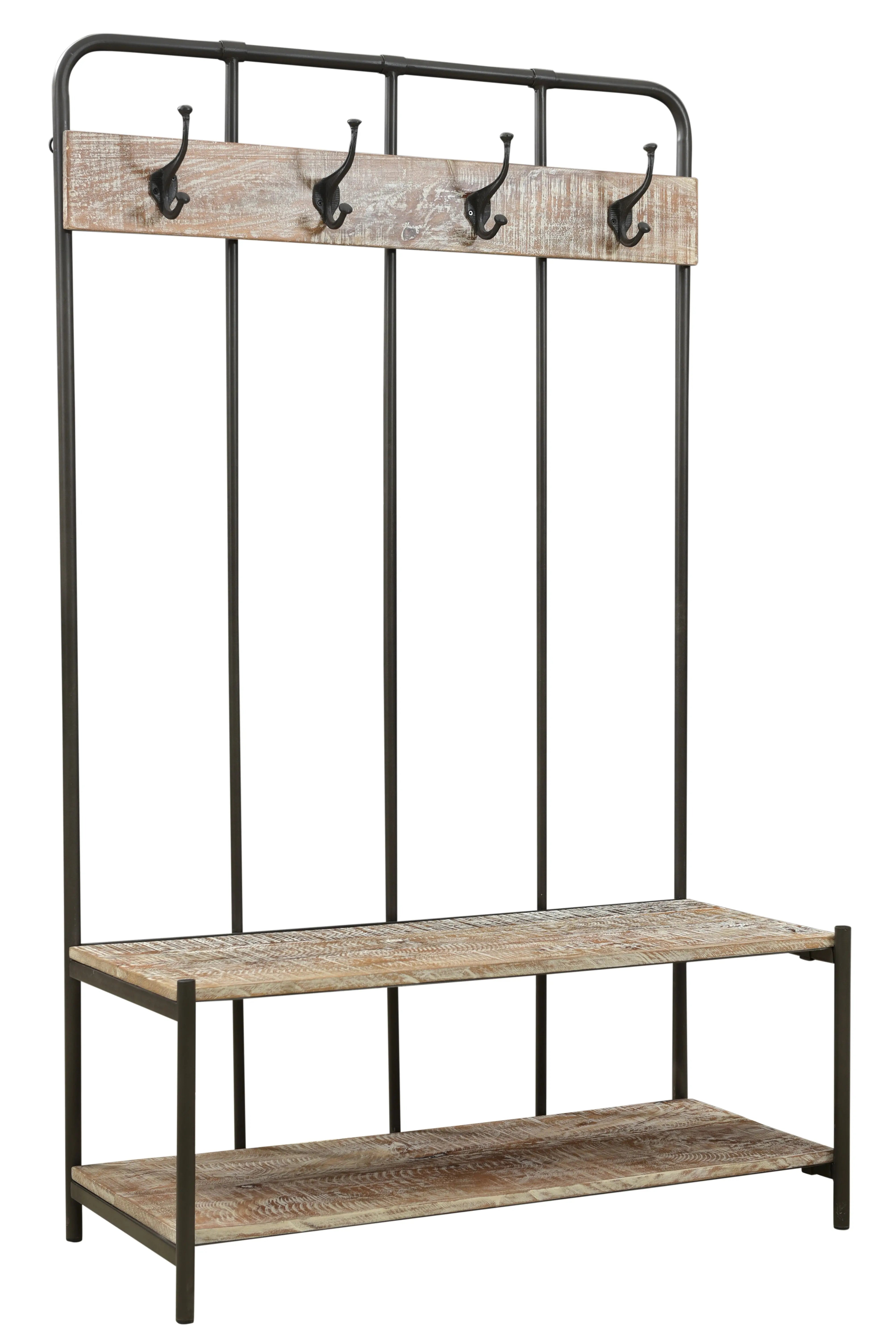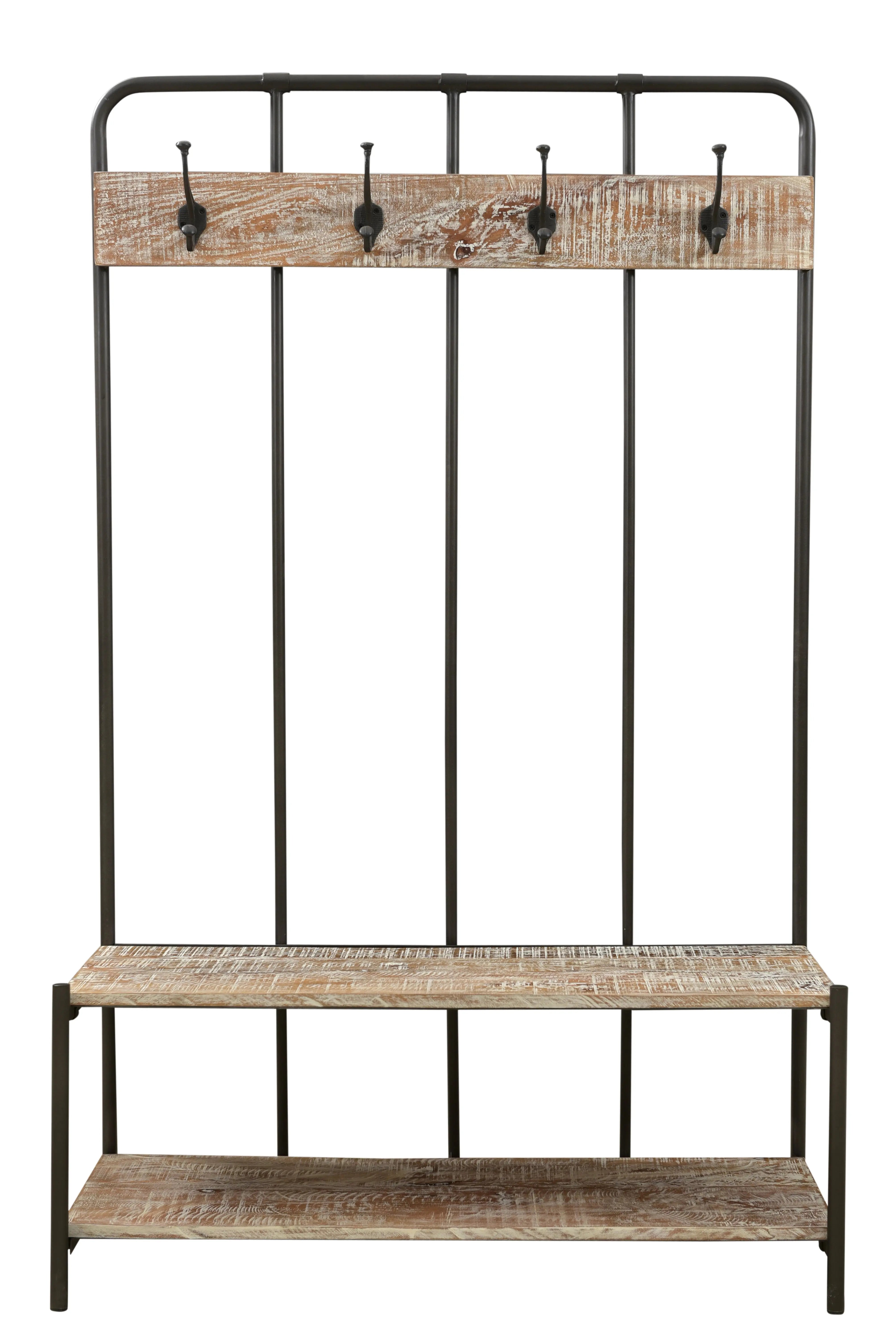71" Black And Brown Metal And Solid Wood Four Hooks Freestanding Coat Rack Homeroots Organization