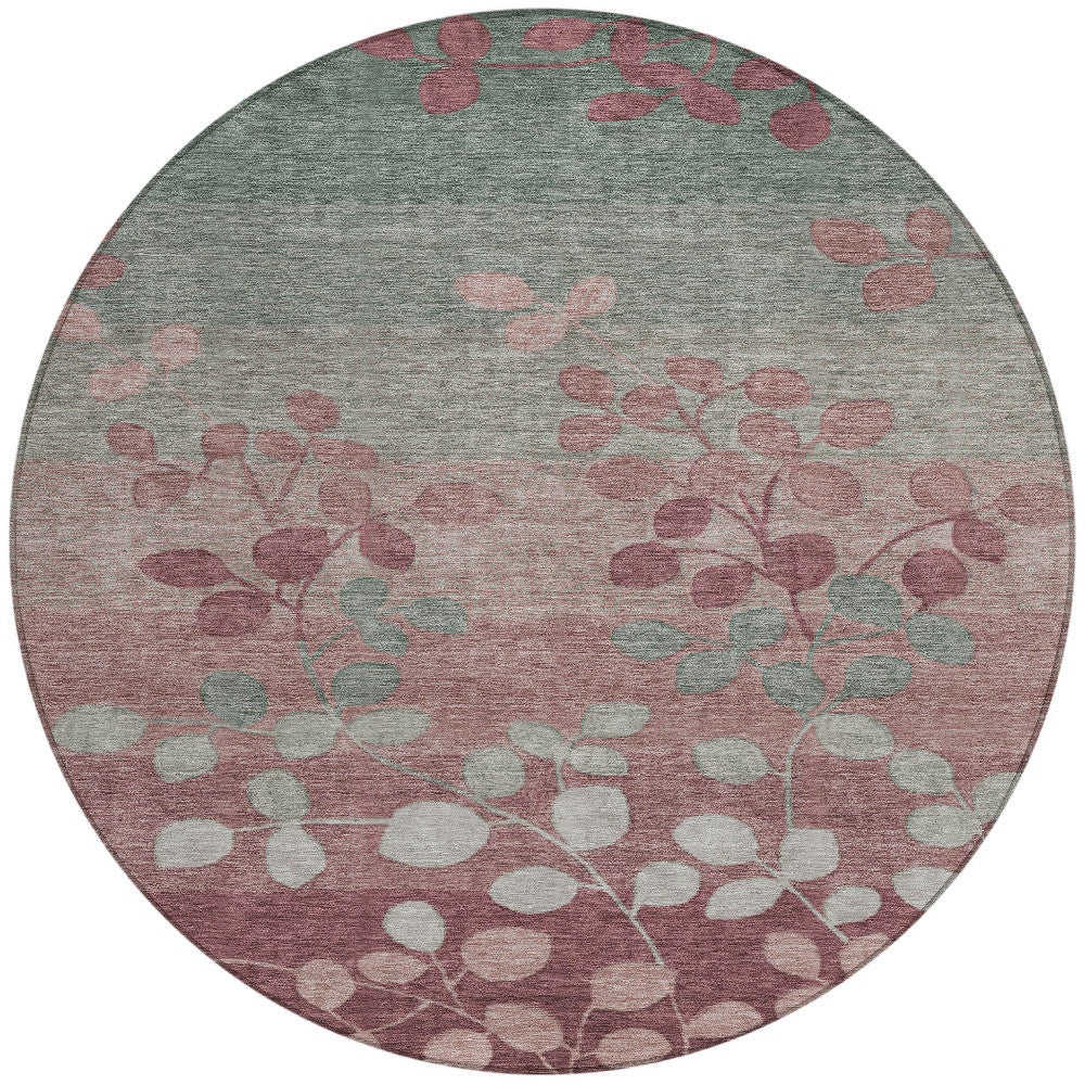 8' Blush And Emerald Round Floral Washable Indoor Outdoor Area Rug