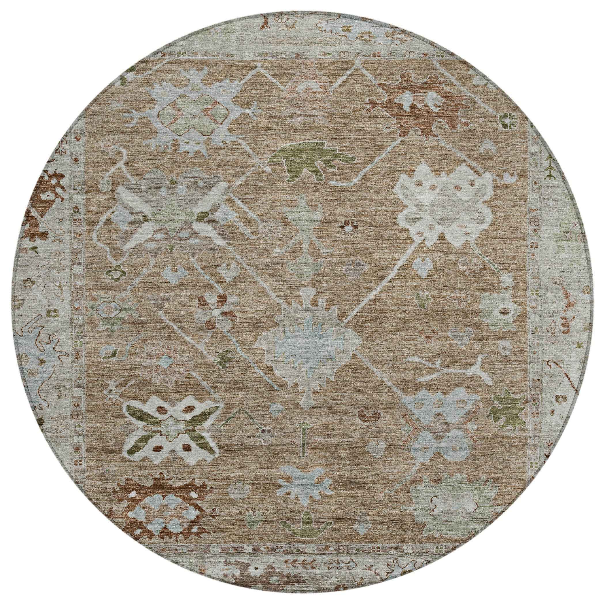 8' Brown And Gray Round Tribal Washable Indoor Outdoor Area Rug