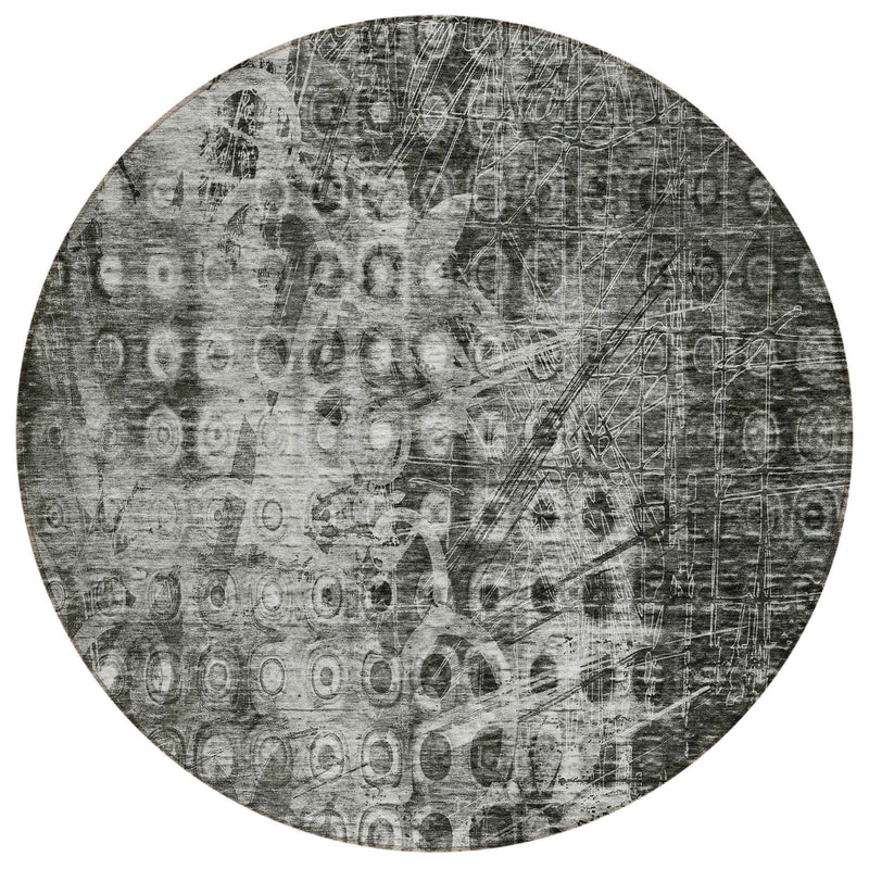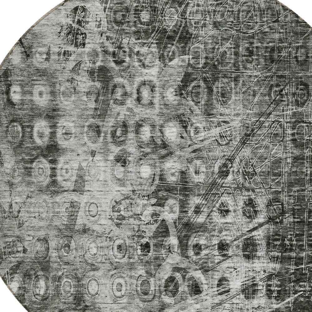 8' Charcoal Round Ikat Washable Indoor Outdoor Area Rug