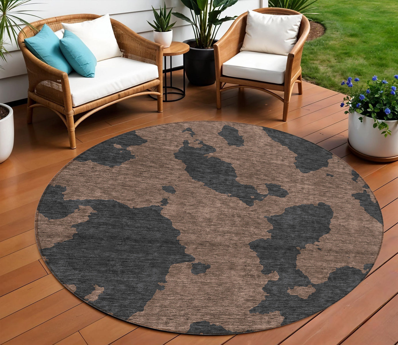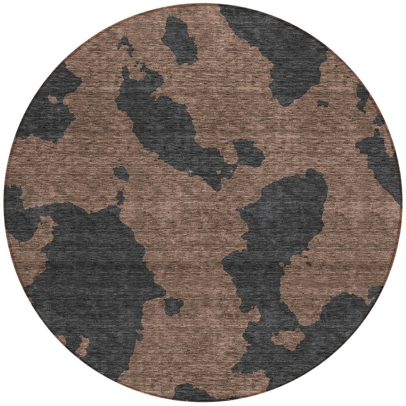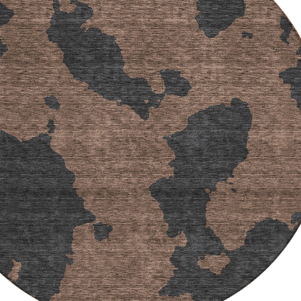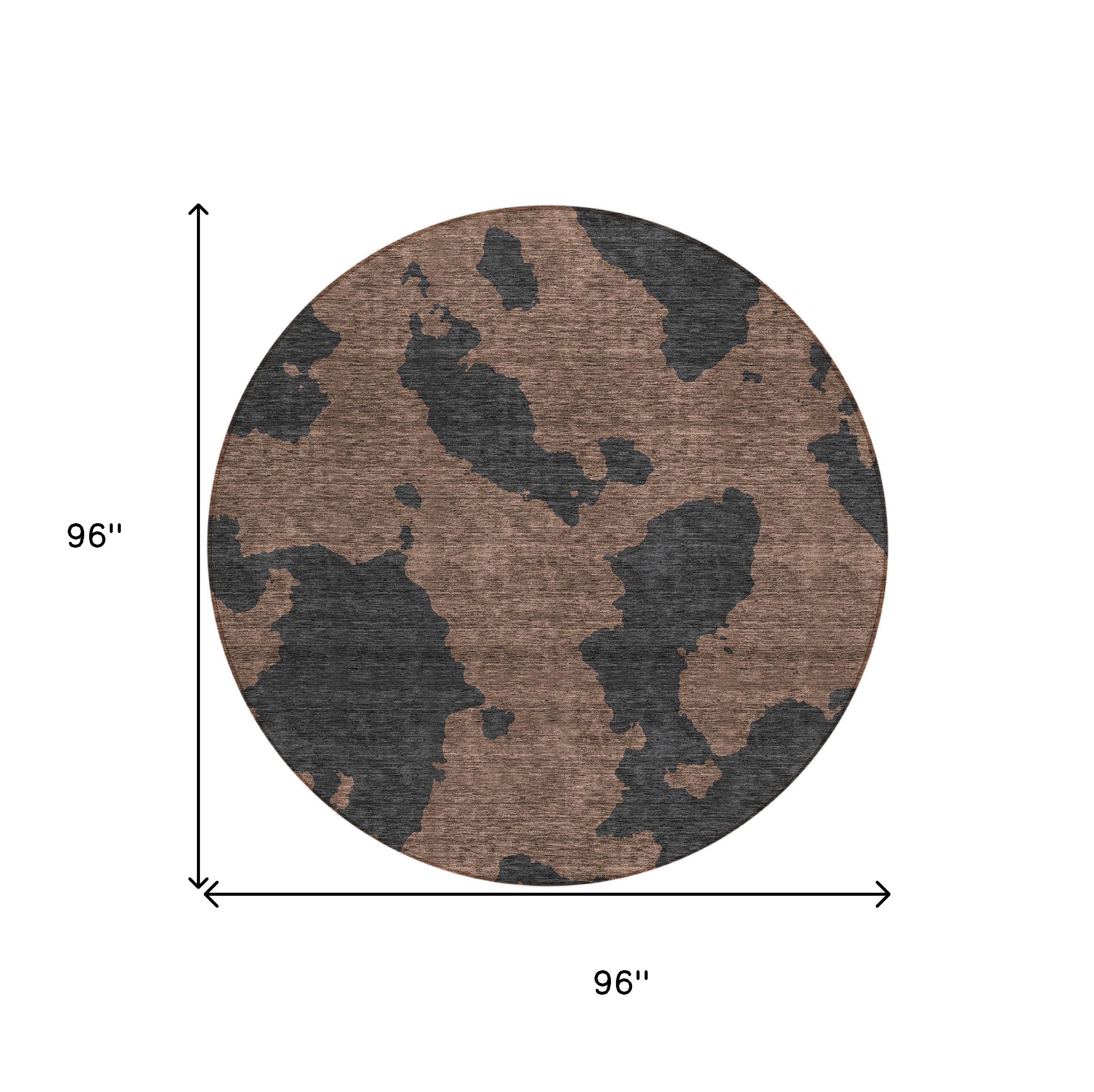 8' Chocolate And Charcoal Round Abstract Washable Indoor Outdoor Area Rug