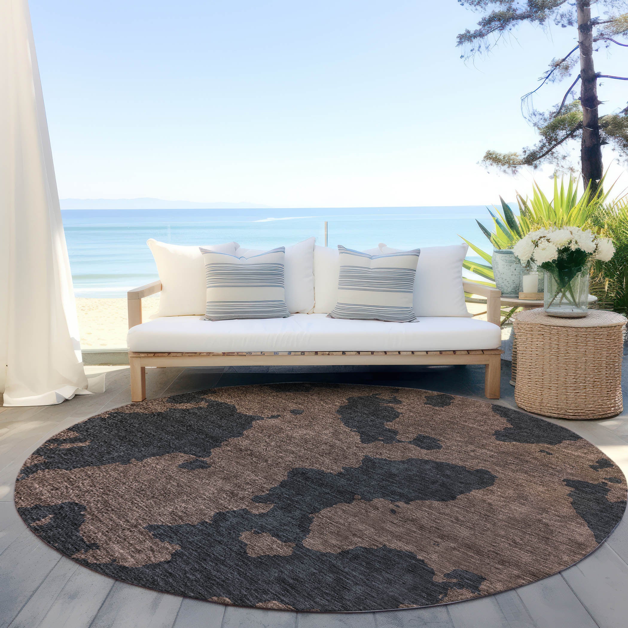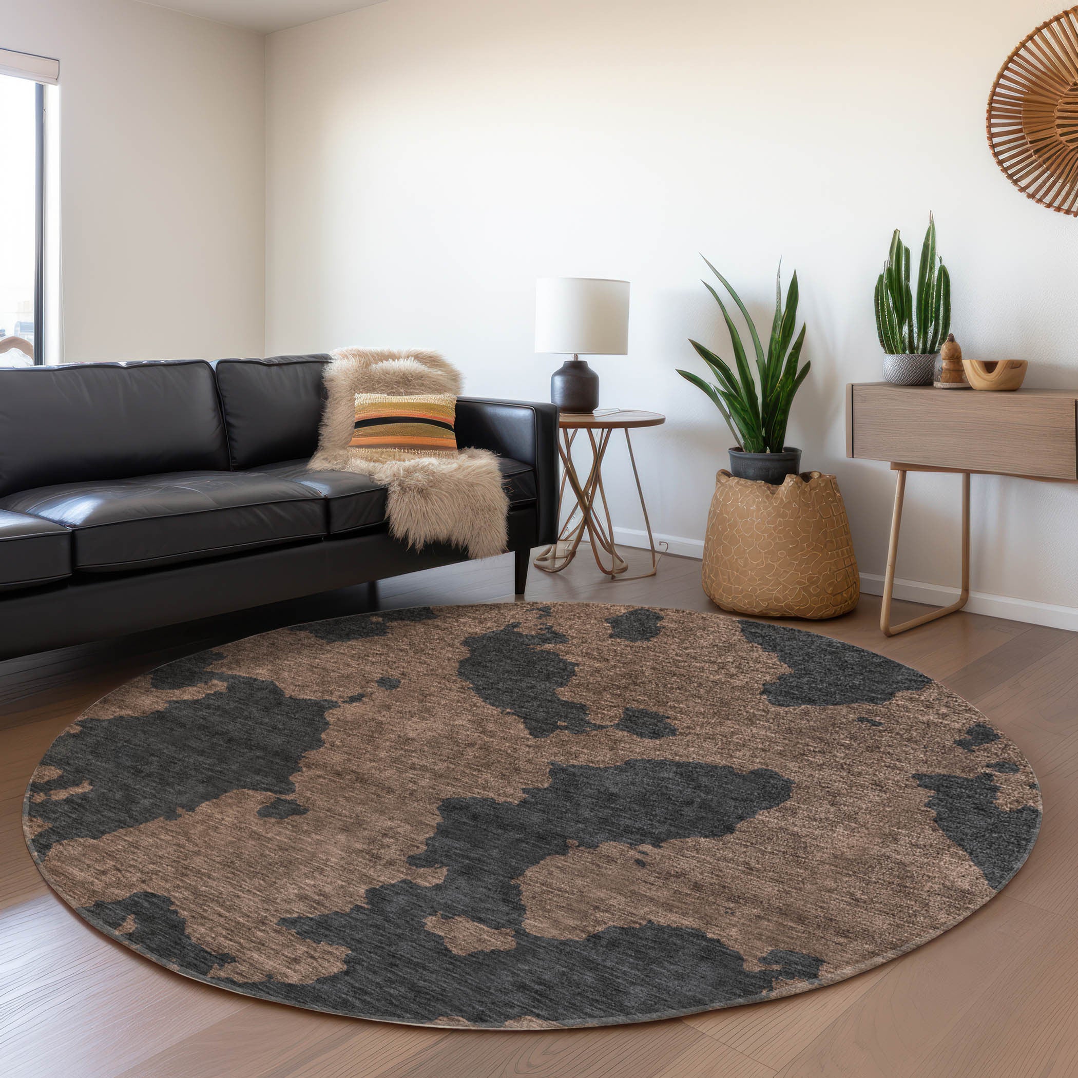 8' Chocolate And Charcoal Round Abstract Washable Indoor Outdoor Area Перейти к содержанию